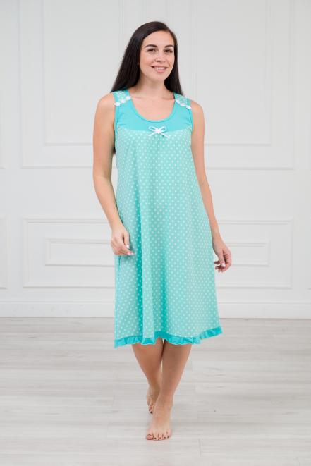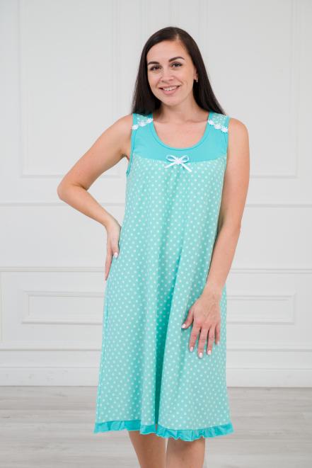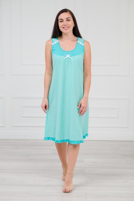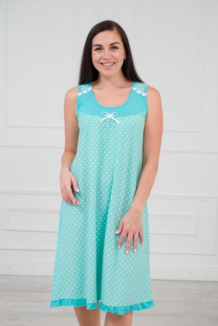Ночная сорочка из кулирки Василиса горох на зеленом