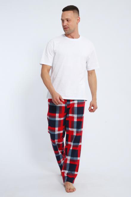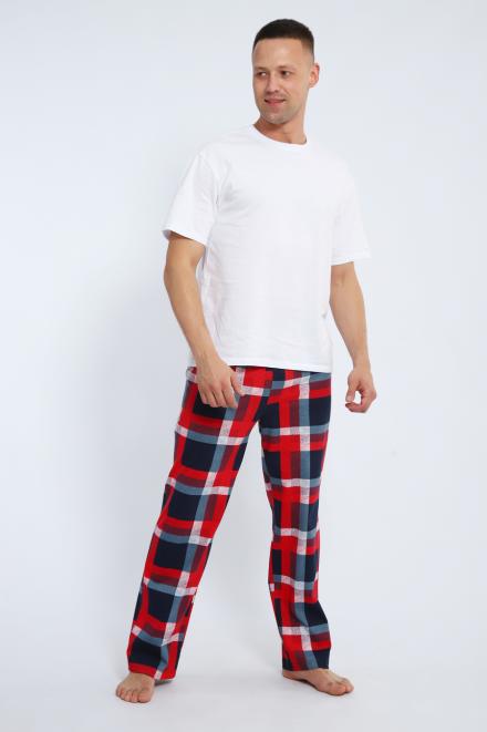 Брюки домашние мужские из кулирки красная клетка