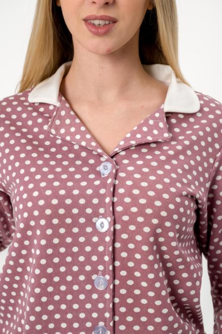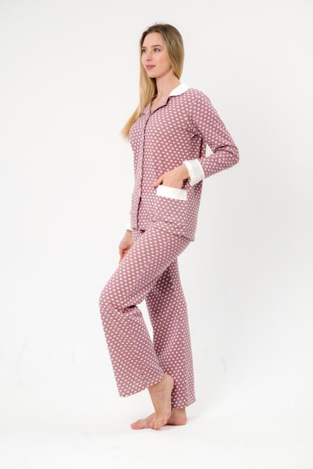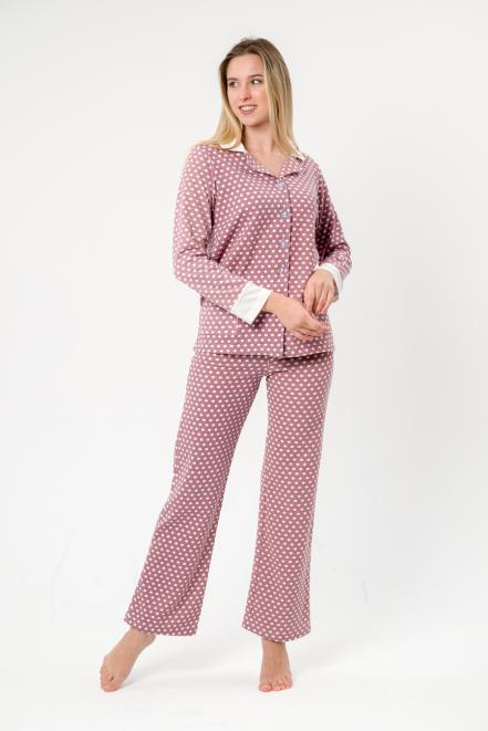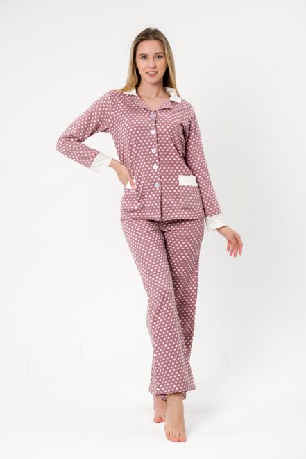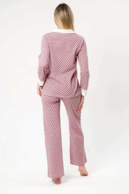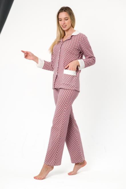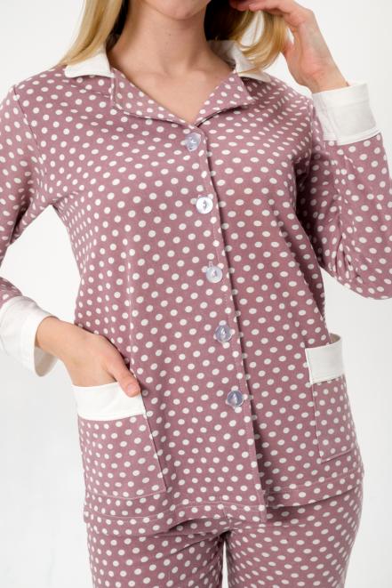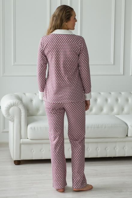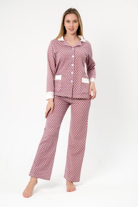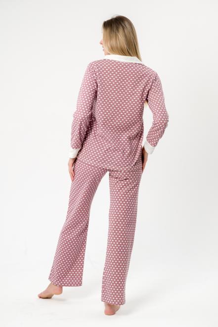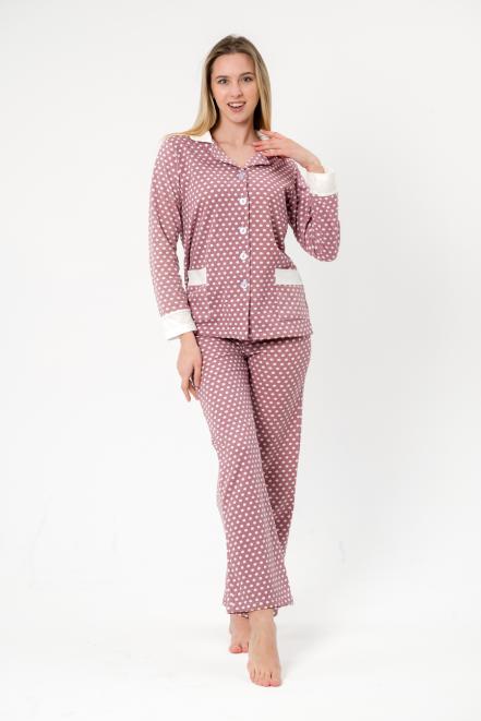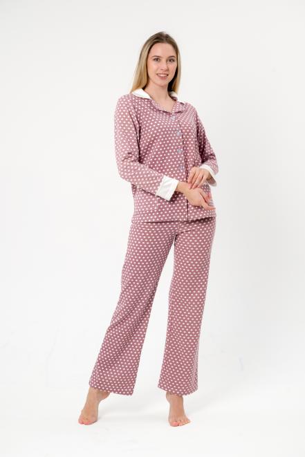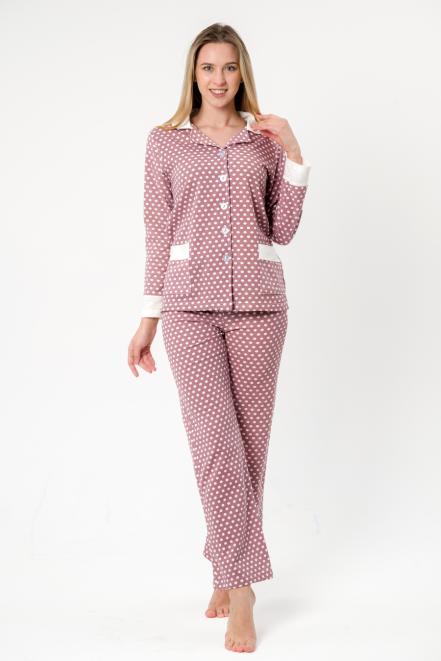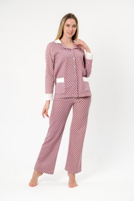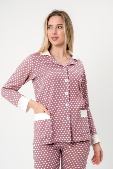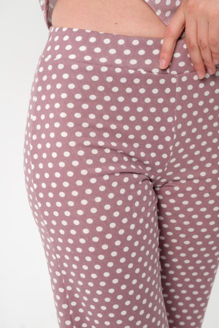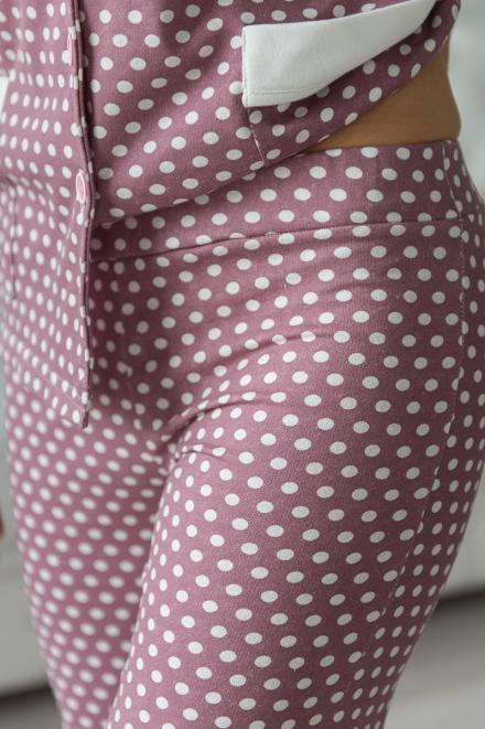 Пижама женская из жакета и брюк из футера Салли горошек на кофе,экрю