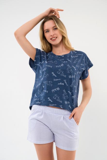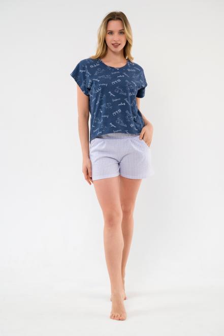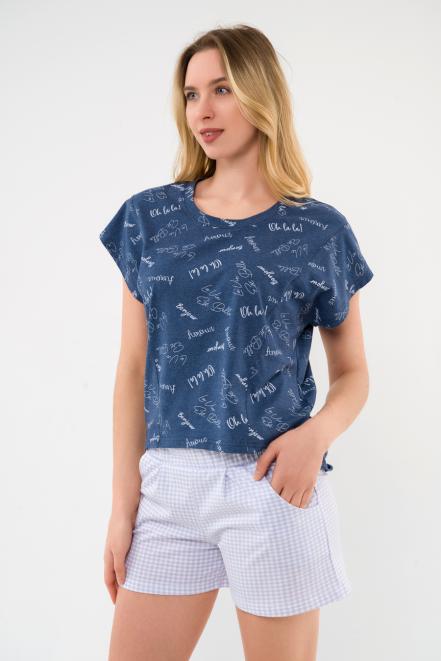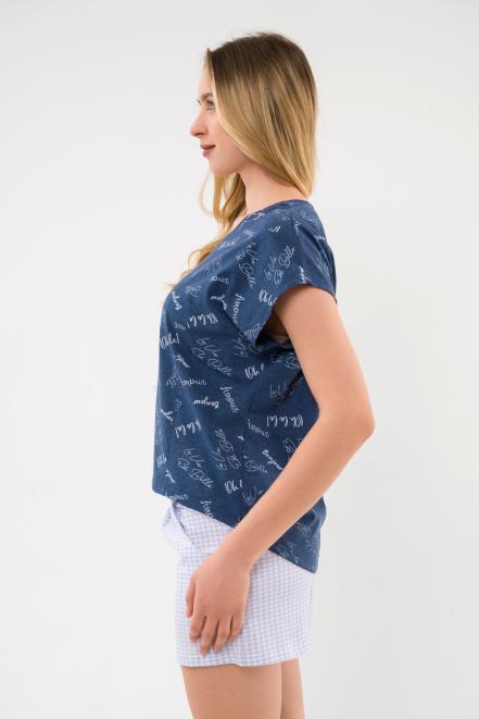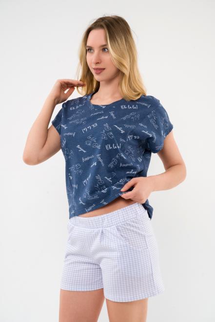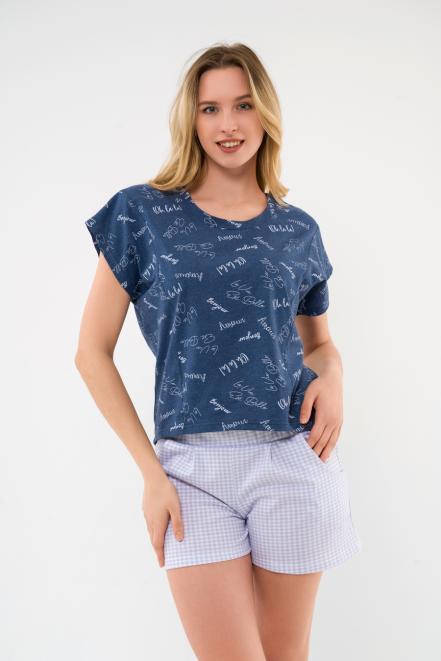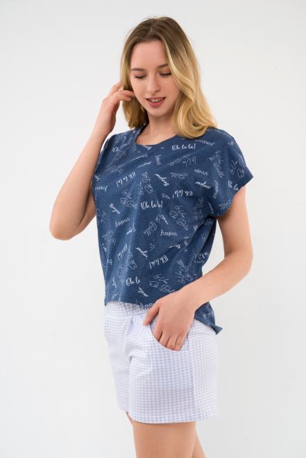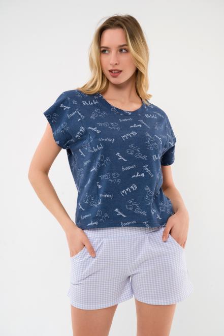 Пижама женская из бридж и футболки из интерлока Королева индиго меланж