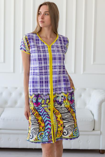 Платье женское домашнее из кулирки Лана голубая ромашка макси