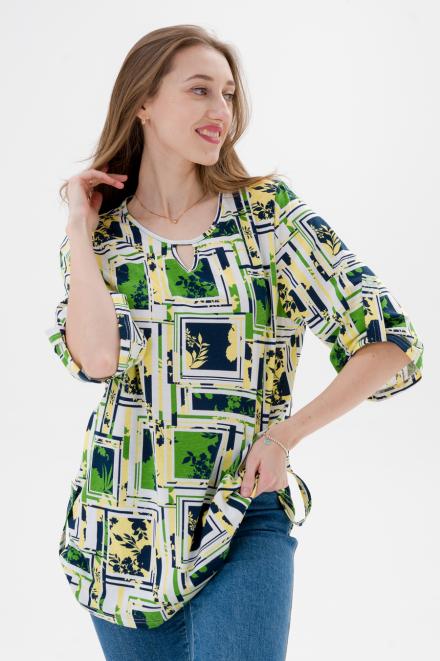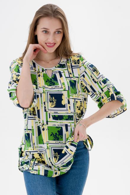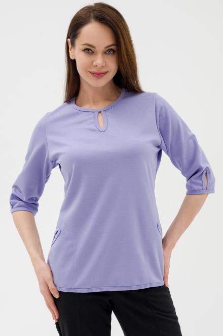 Блуза женская из кулирки Матильда горошек на тёмно-синем