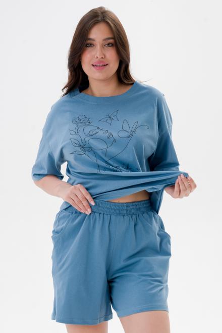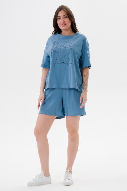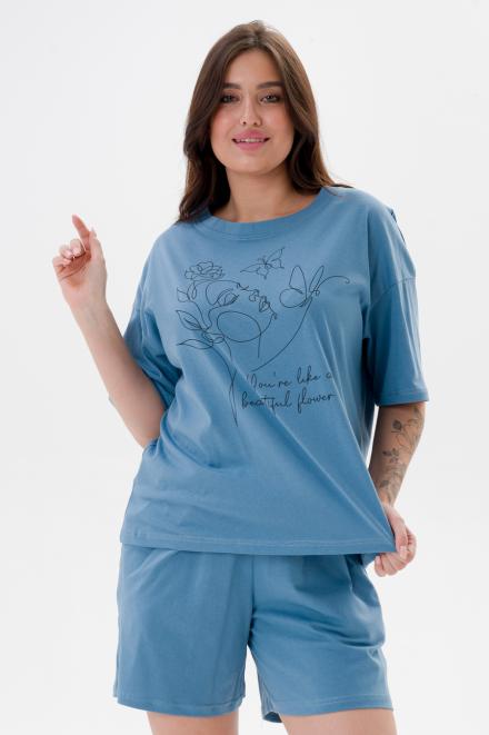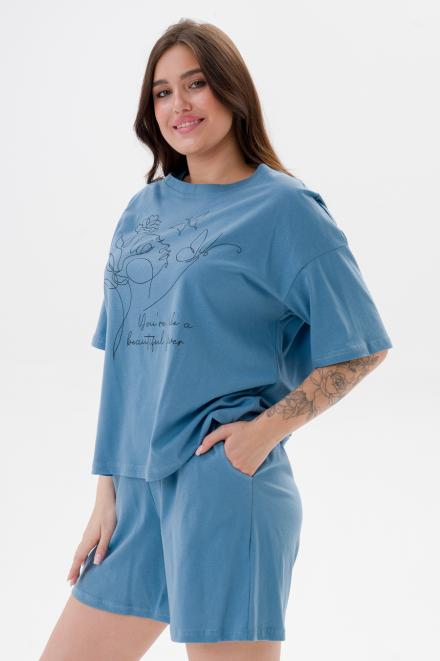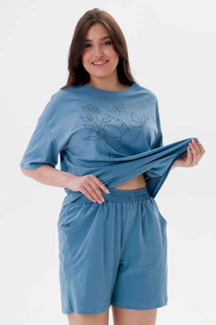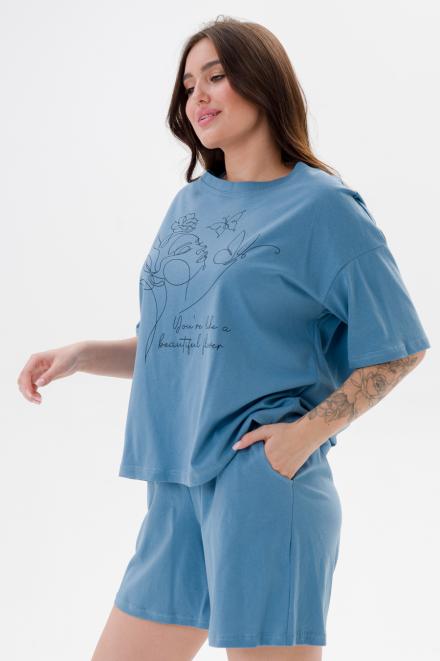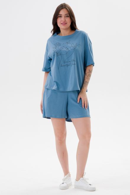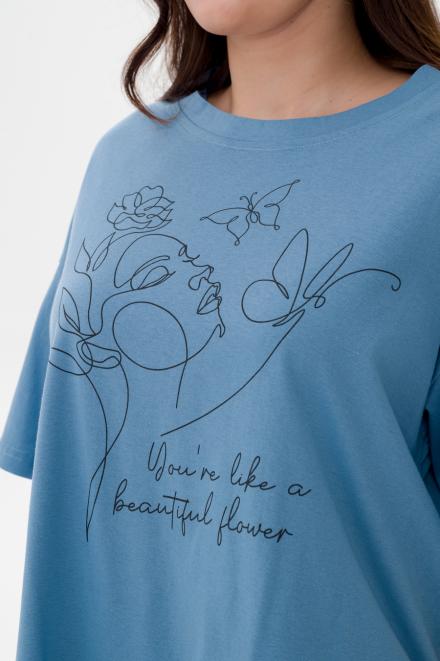 Ночная сорочка из интерлока длинный рукав Соня голубой