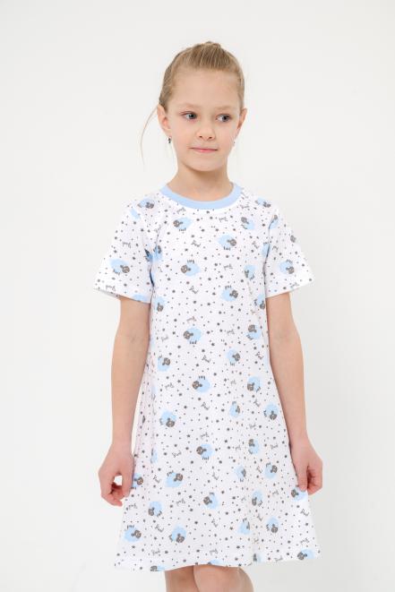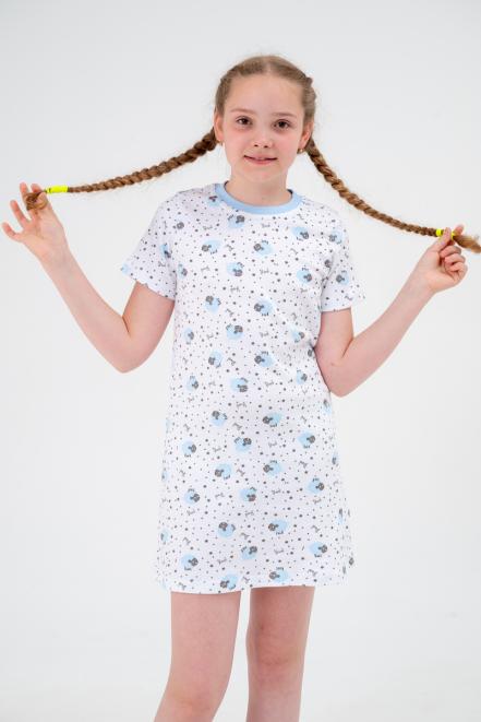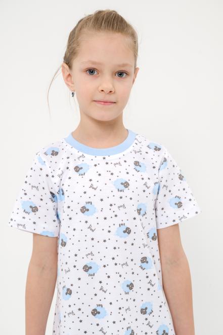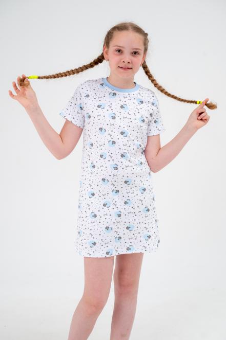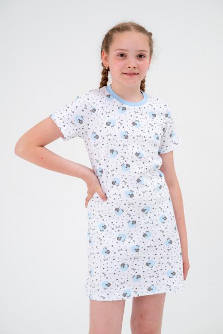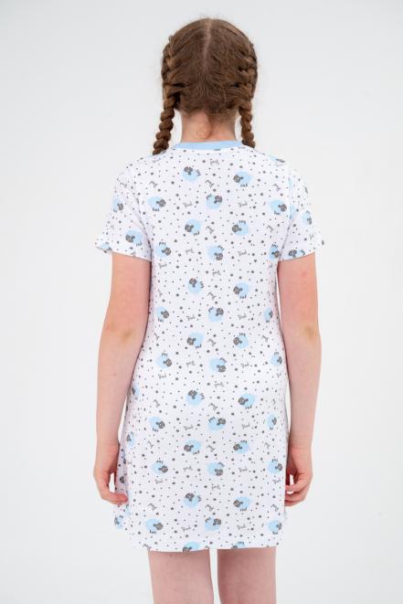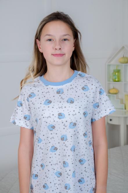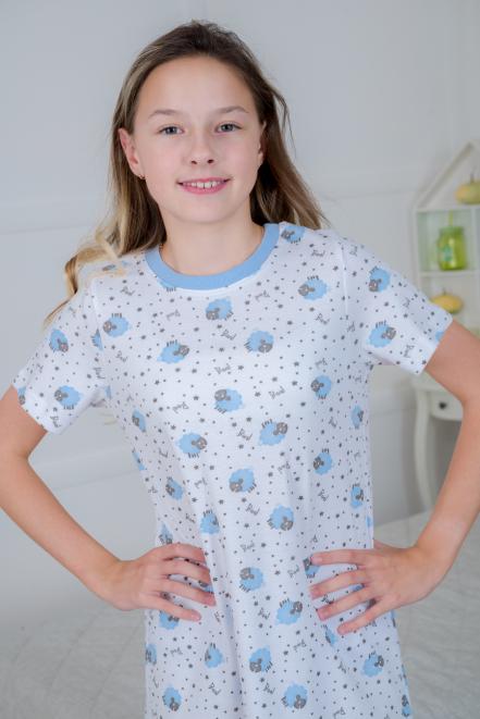 Ночная сорочка подростковая из интерлока Ласка овечки голубой