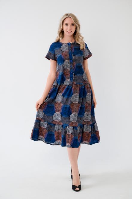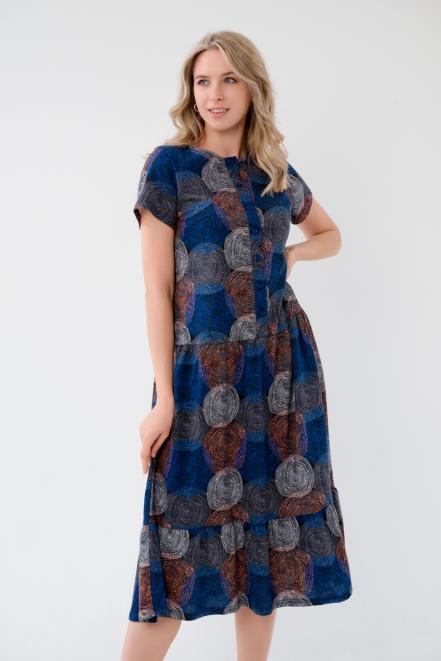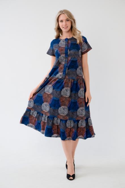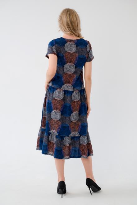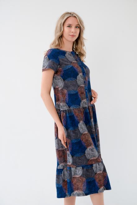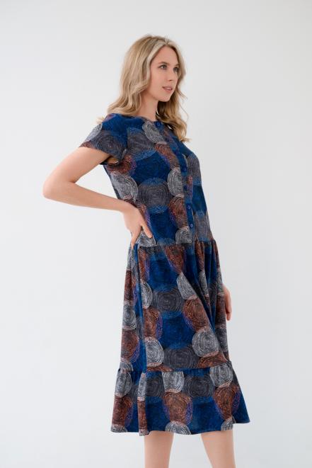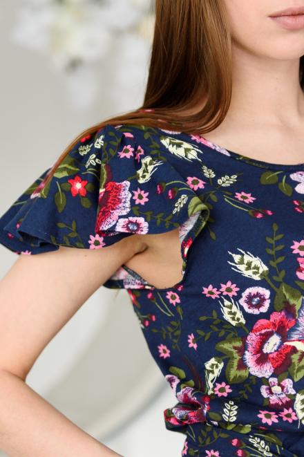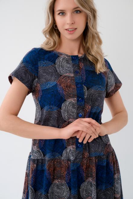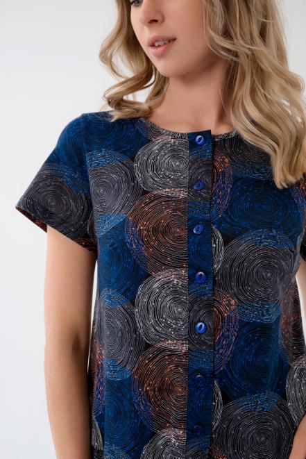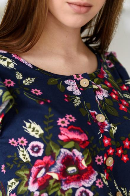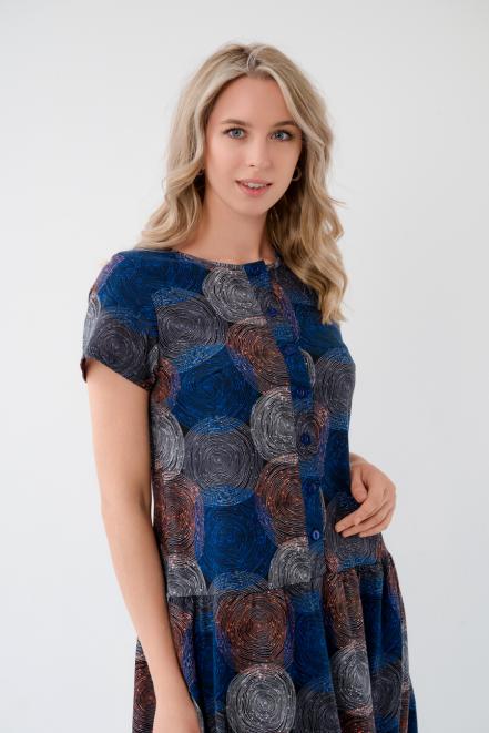 Блуза женская из кулирки Матильда горошек на тёмно-синем макси