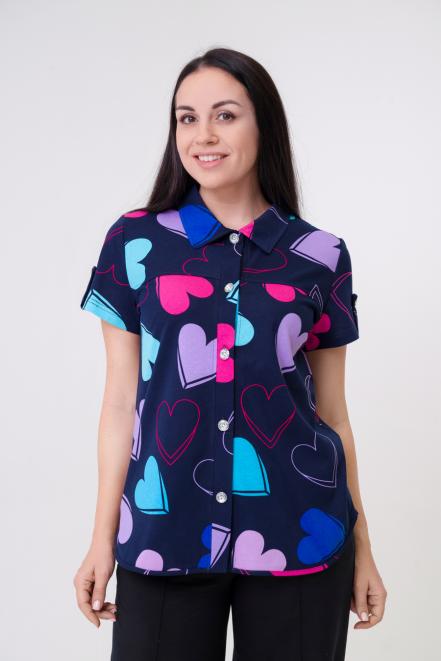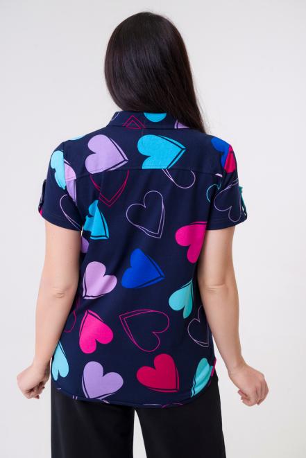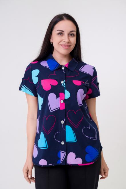 Блуза женская из кулирки Матильда горошек на тёмно-синем