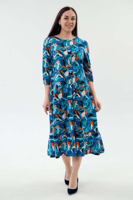 Блуза женская из кулирки Матильда горошек на тёмно-синем макси