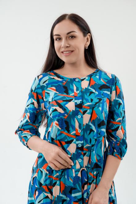 Ночная сорочка из интерлока длинный рукав Соня голубой