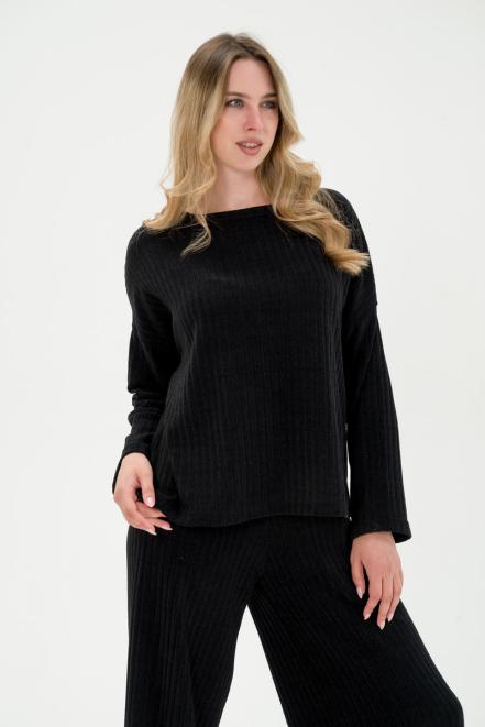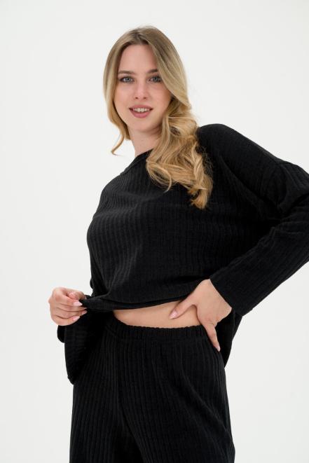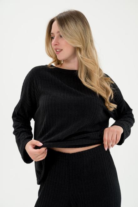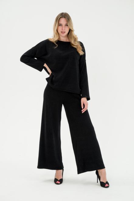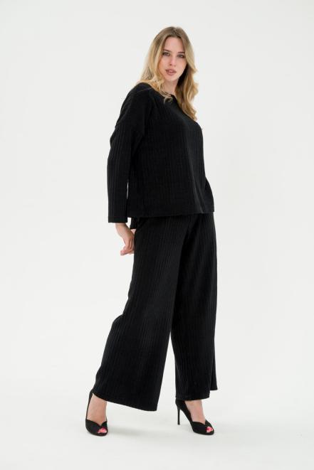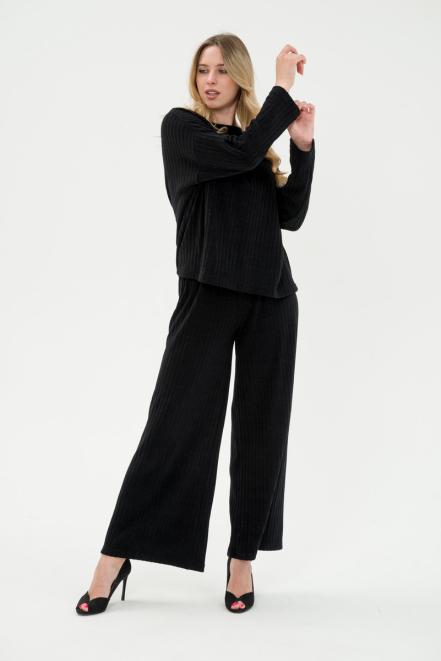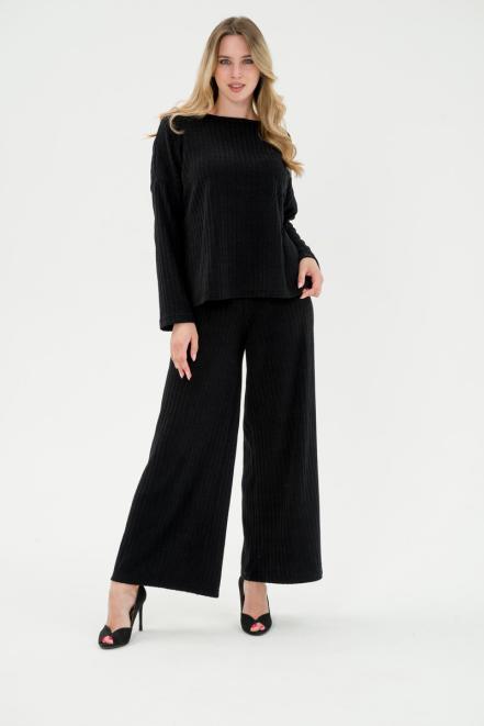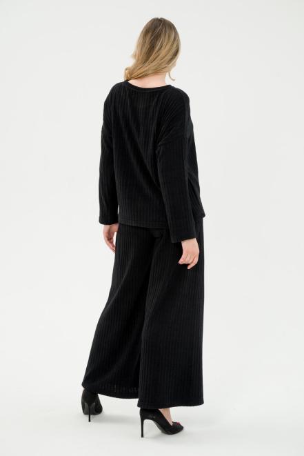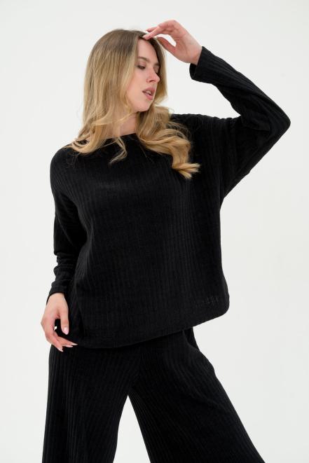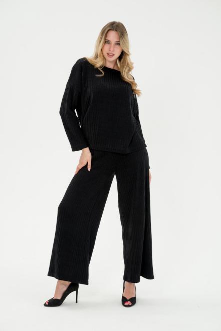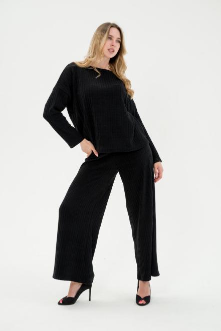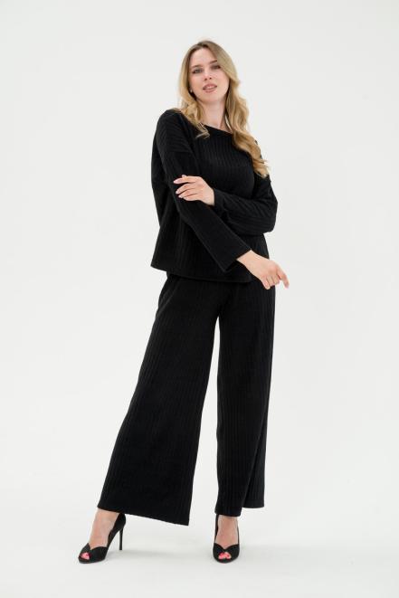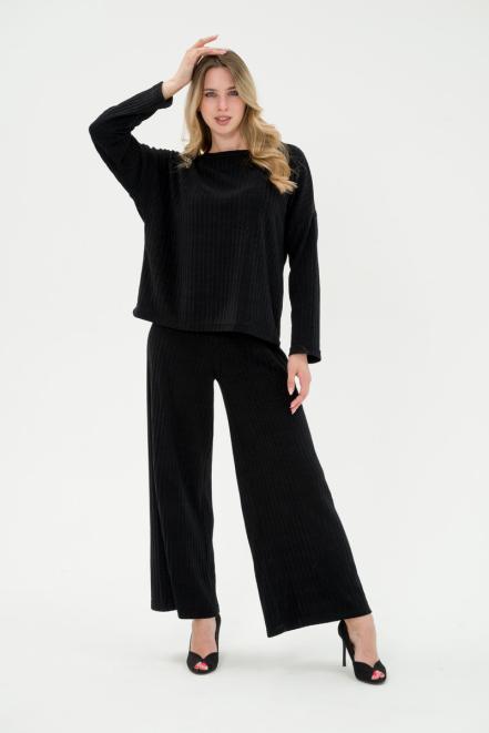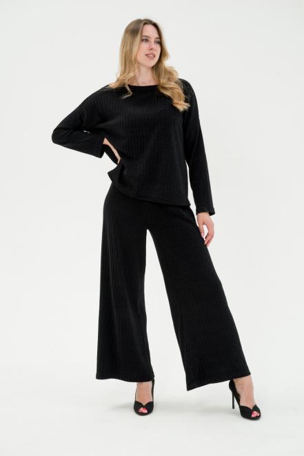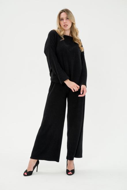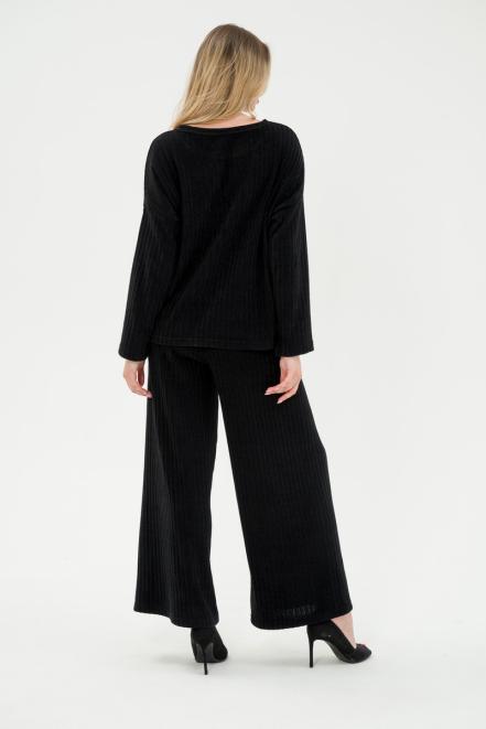 Костюм женский из джемпера и брюк лапша велюр Византия черный