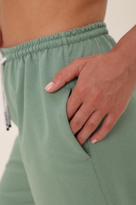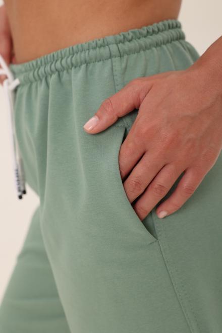 Брюки женские из футера трехнитка с начесом Сова изумруд