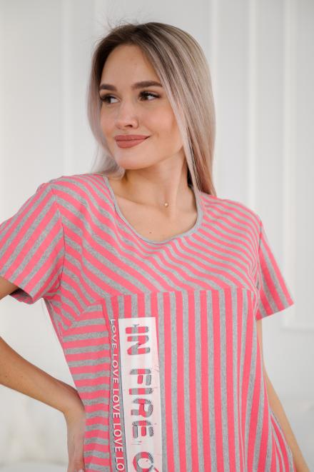 Ночная сорочка из интерлока длинный рукав Соня розовый
