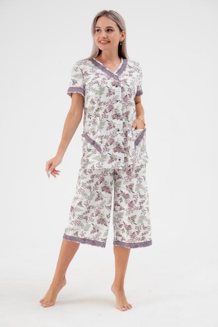 Пижама женская из футера Капучино с бриджами