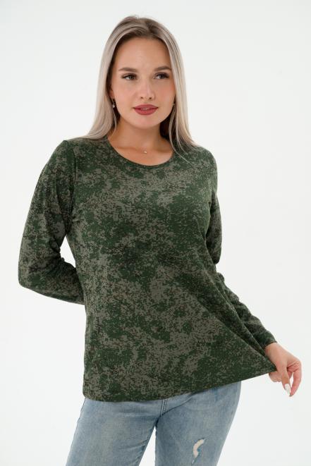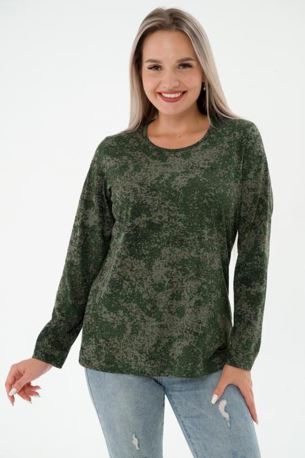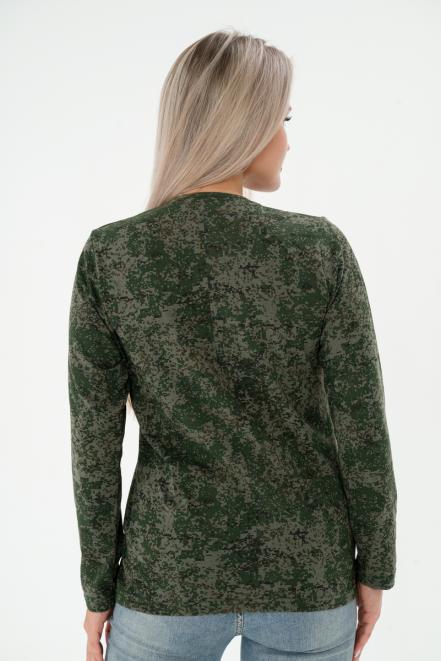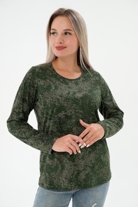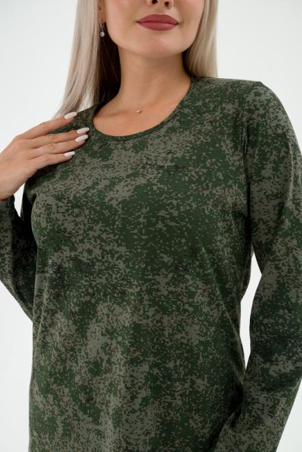 Футболка женская длинный рукав из кулирки цифра зеленый макси