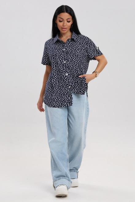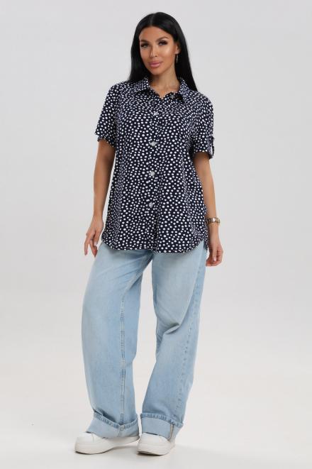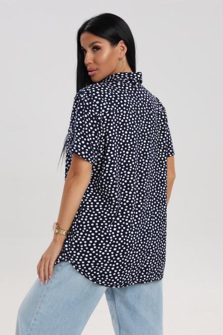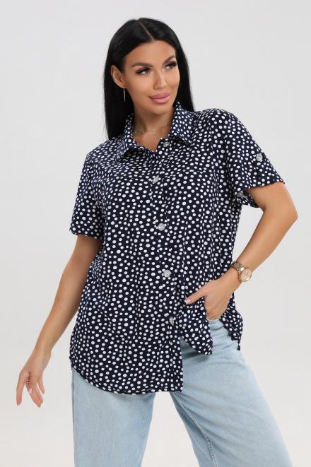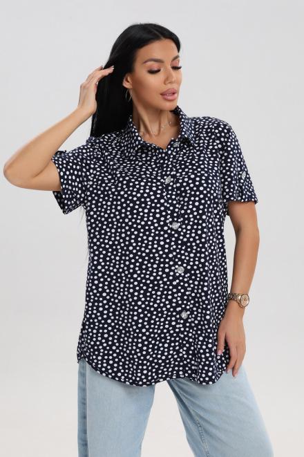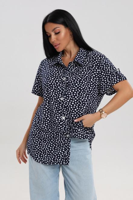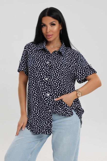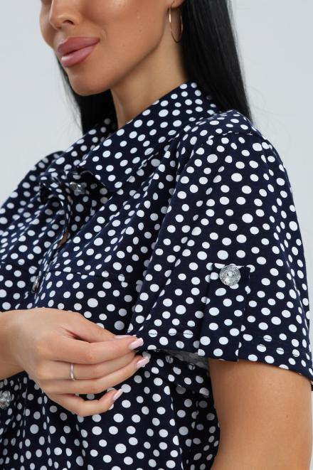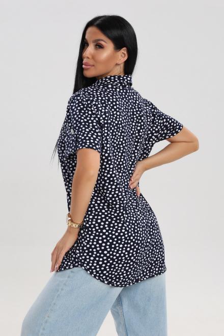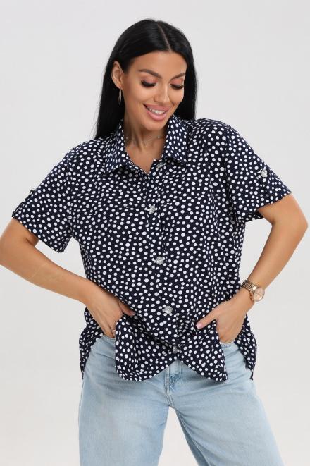 Блуза женская из кулирки Матильда горошек на тёмно-синем