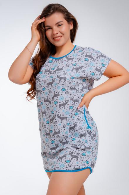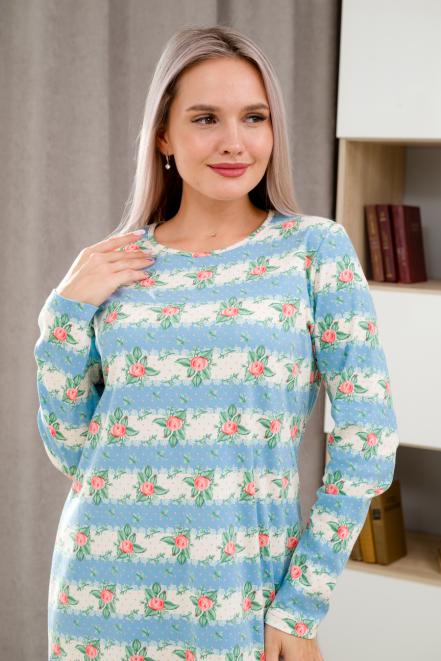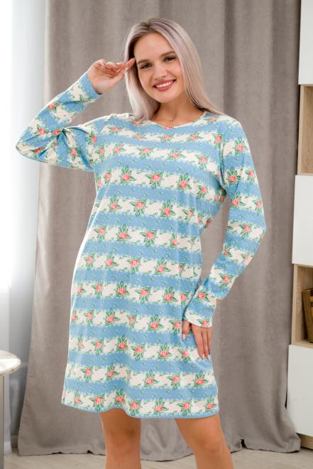 Ночная сорочка из интерлока длинный рукав Соня голубой