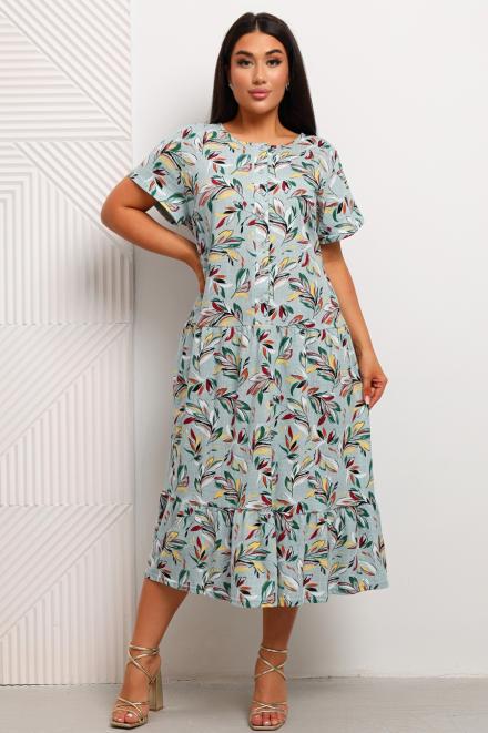 Платье женское из кулирки Кармелита веточка олива