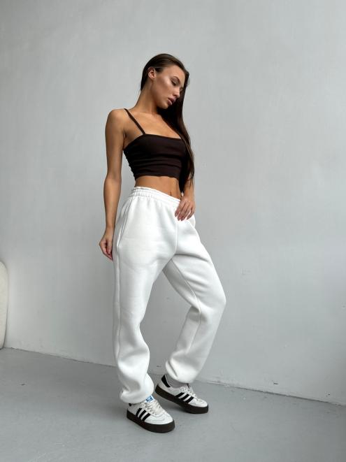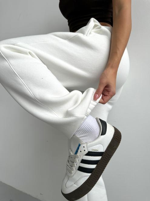 Брюки женские из футера трехнитка с начесом Сова экрю макси
