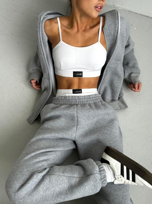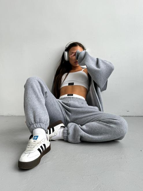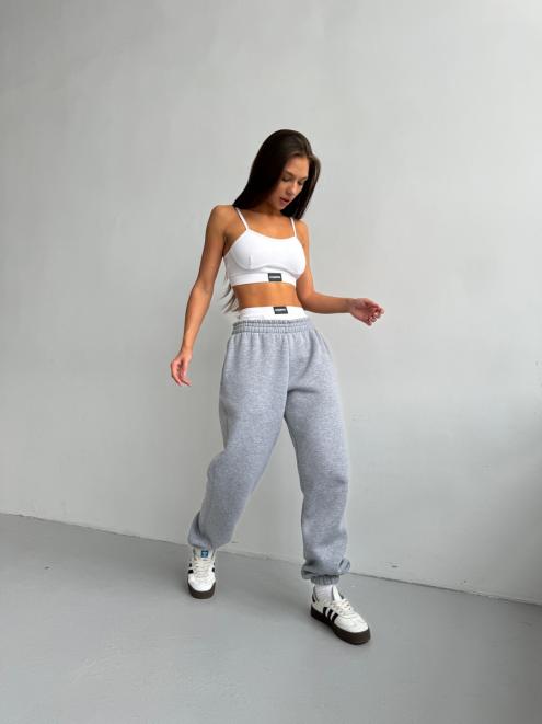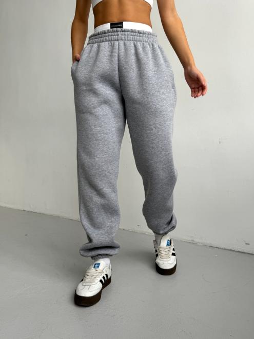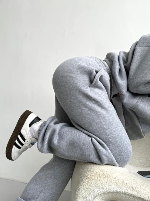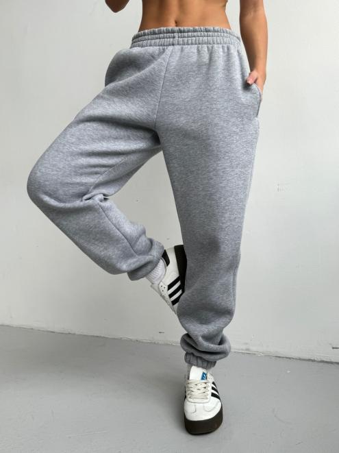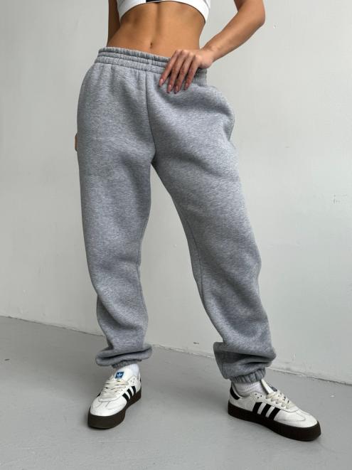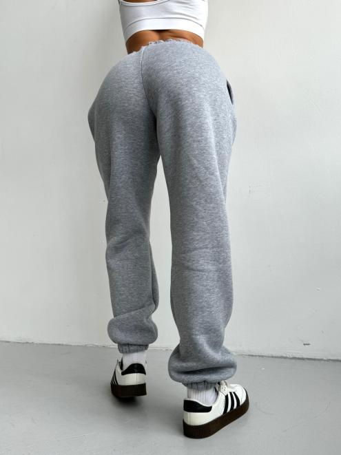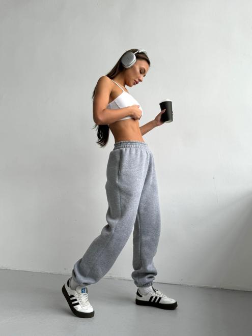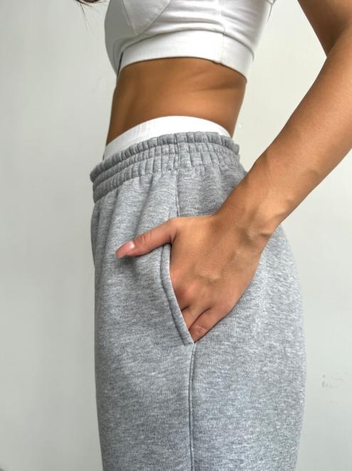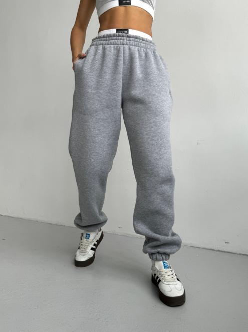 Брюки женские из футера трехнитка с начесом Сова серый меланж