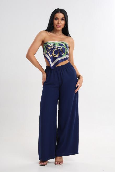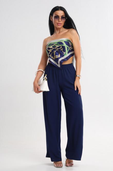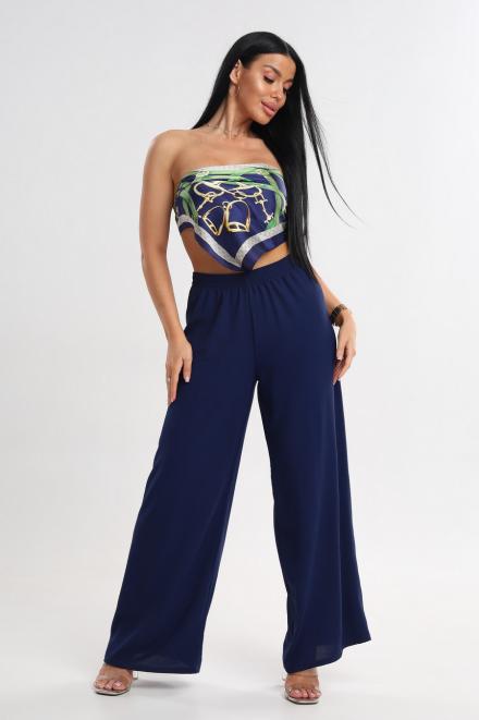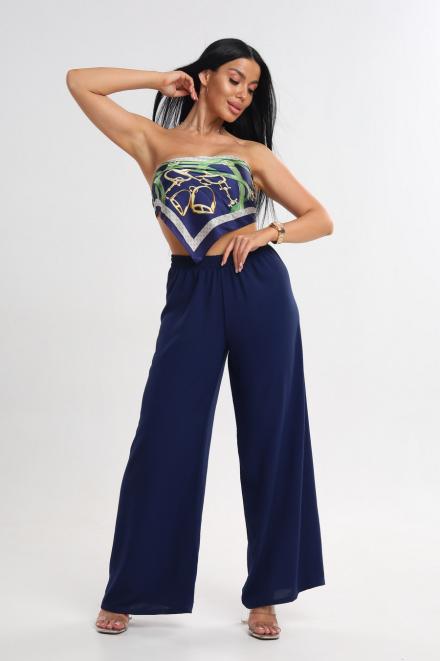 Брюки женские Палаццо из жатки тёмно-синий