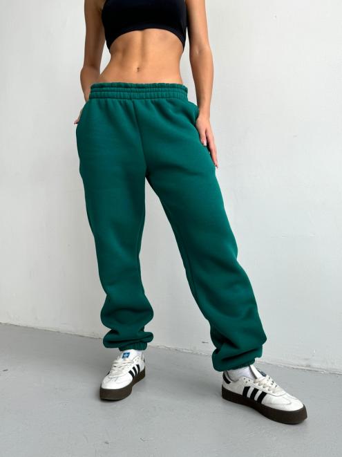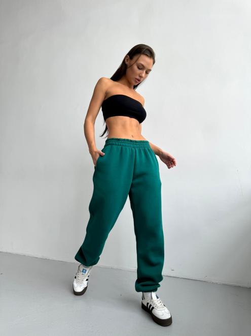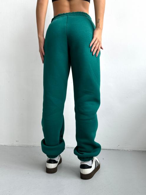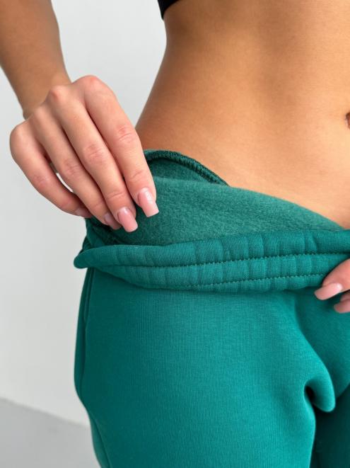 Брюки женские из футера трехнитка с начесом Сова изумруд