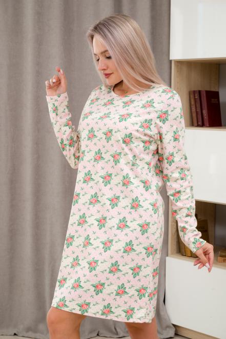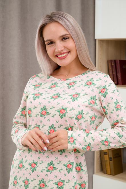 Ночная сорочка из интерлока длинный рукав Соня розовый