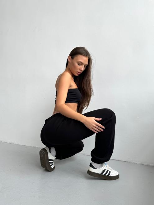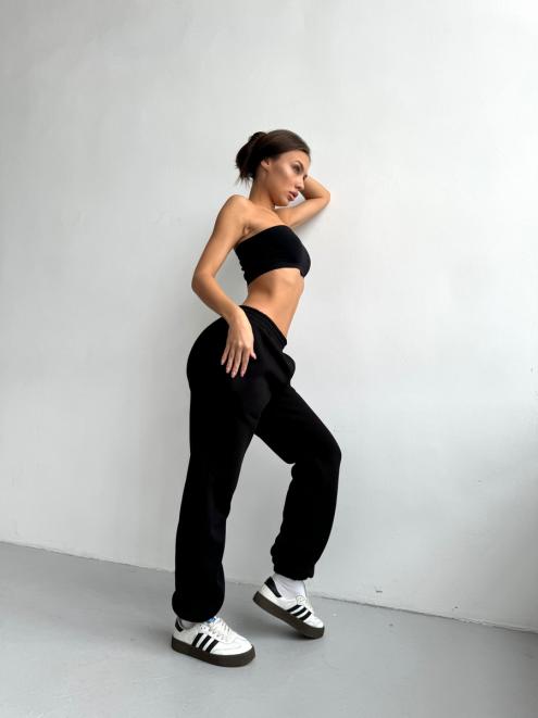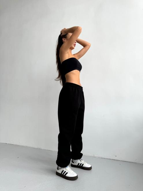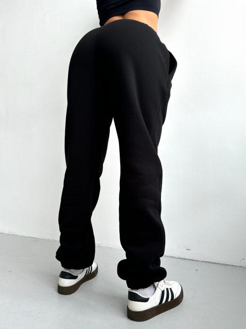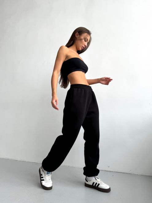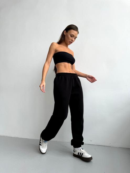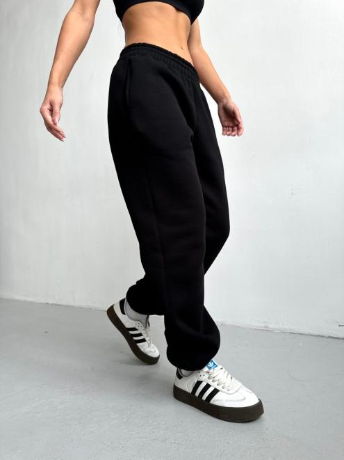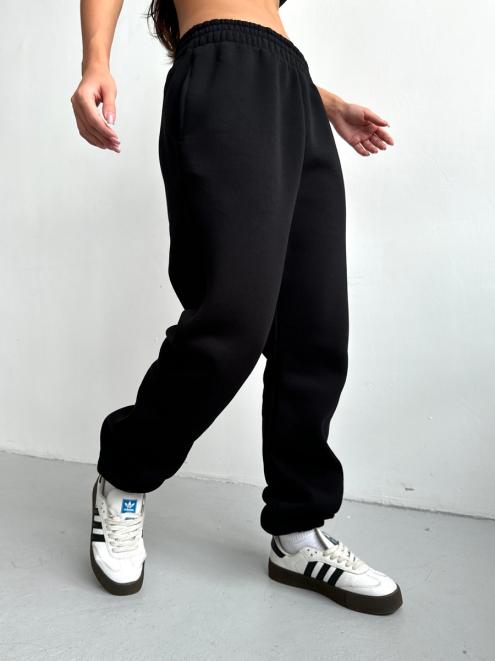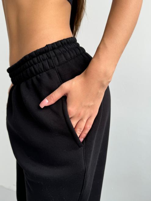 Брюки женские из футера трехнитка с начесом Сова черный
