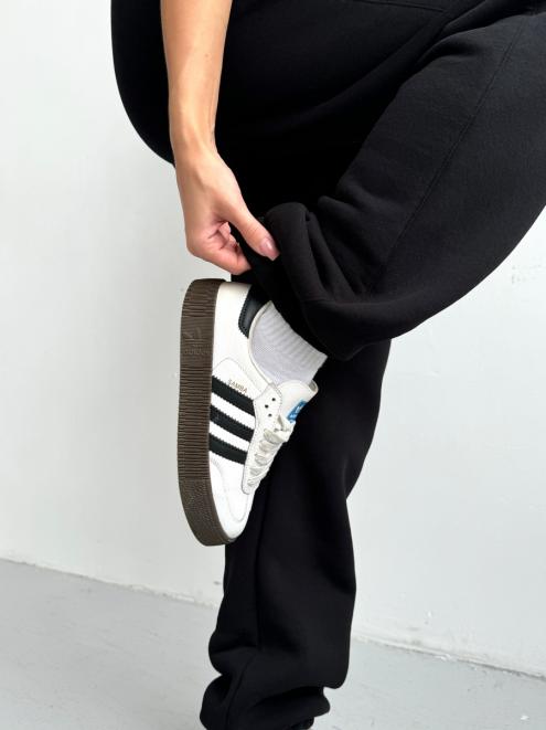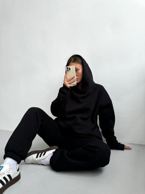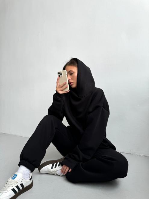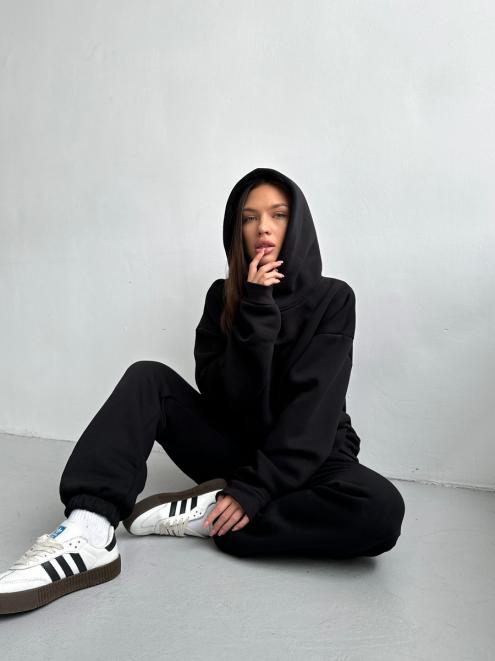 Брюки женские из футера трехнитка с начесом Сова черный макси