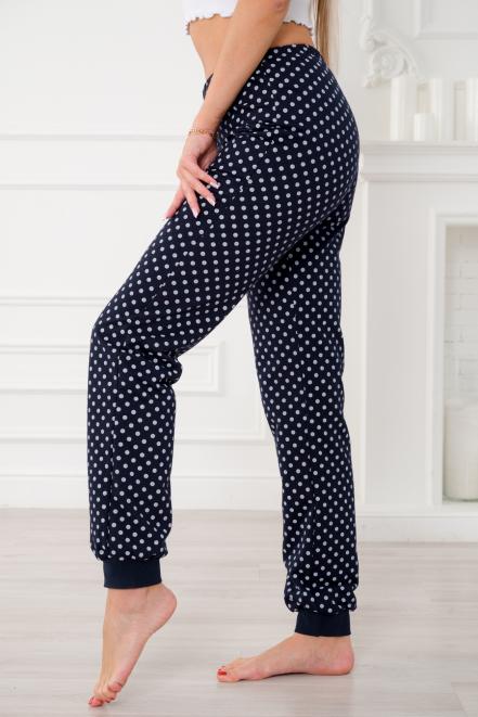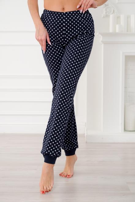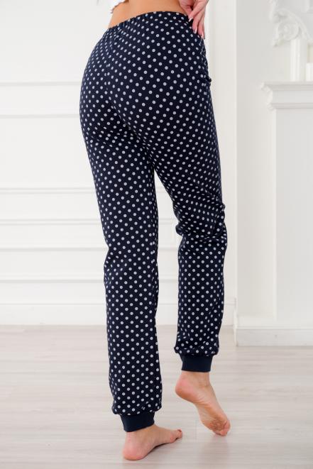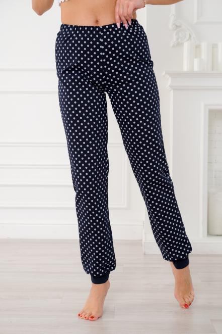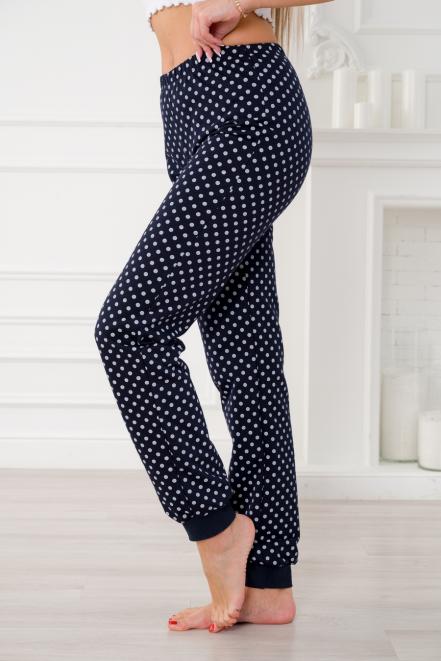 Брюки женские домашние из футера на манжете горох на синем