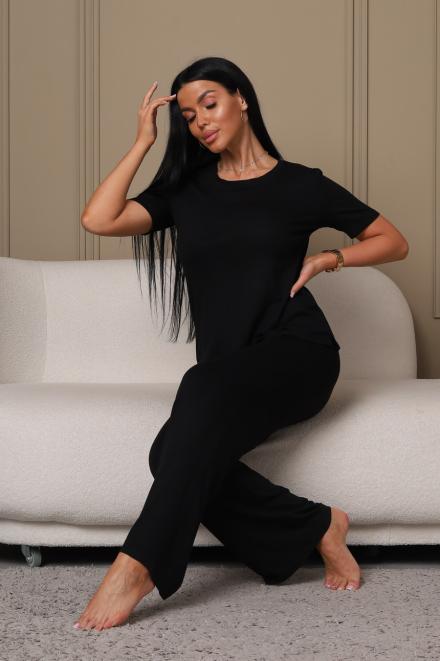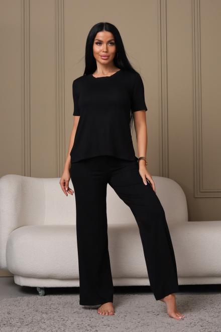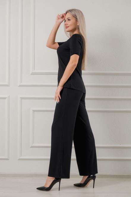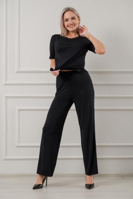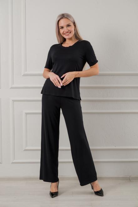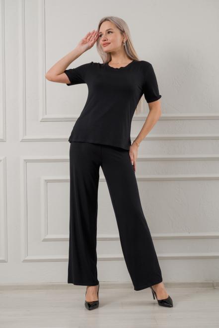 Костюм женский из футболки и брюк из вискозы коллекция "Лотос" черный