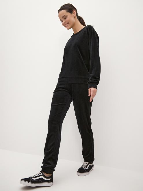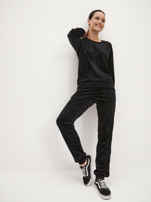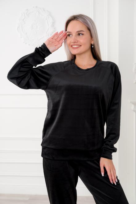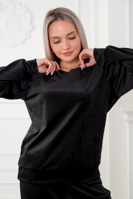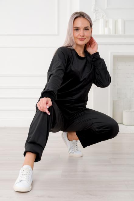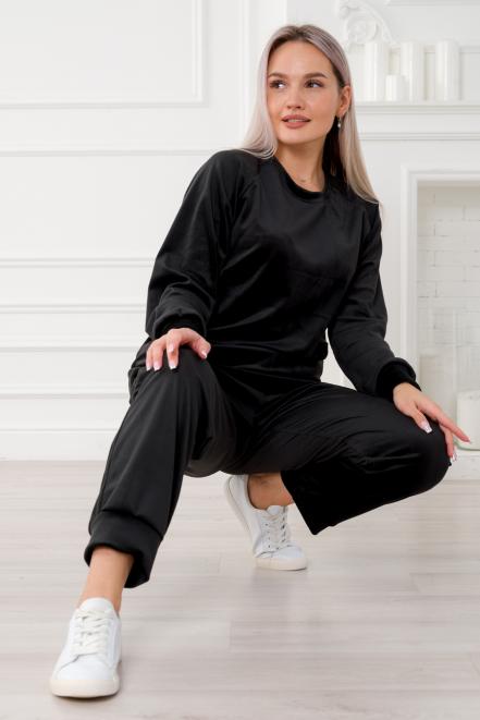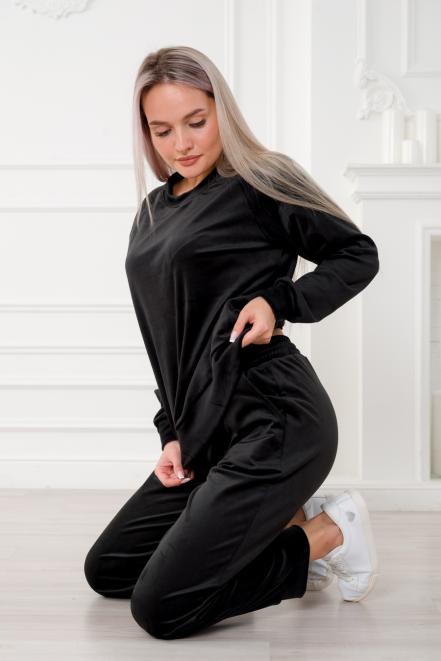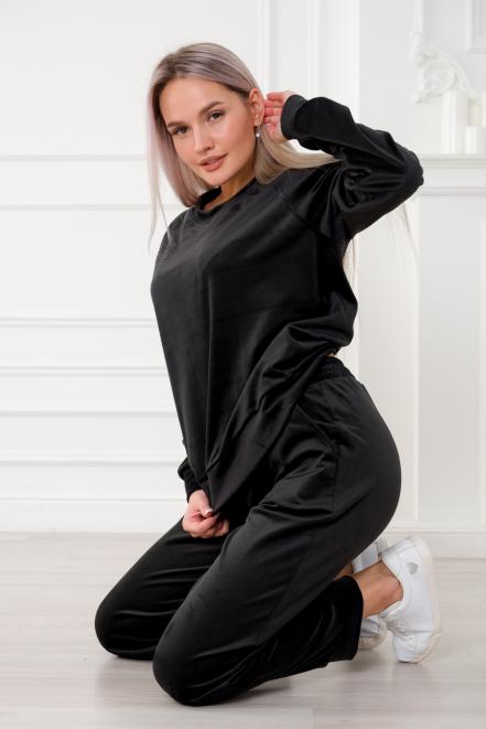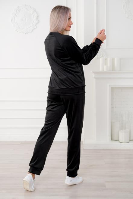 Костюм женский из свитшота и брюк из стрейч велюра Люкс черный