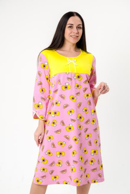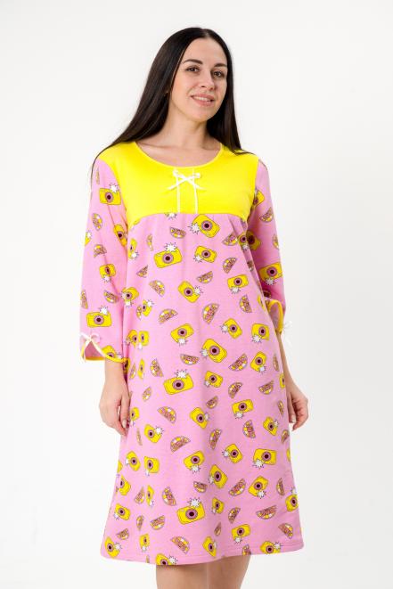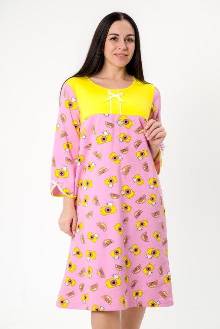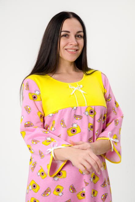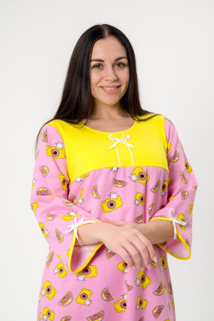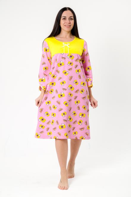 Ночная сорочка из интерлока длинный рукав Соня розовый