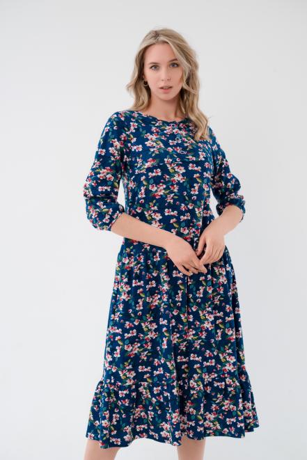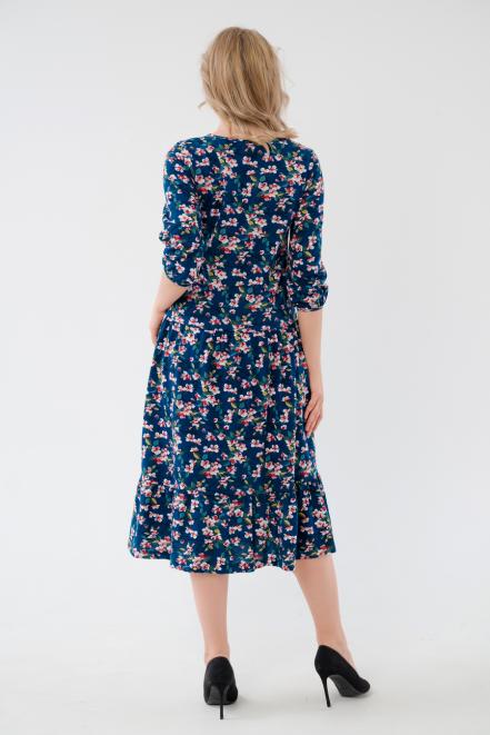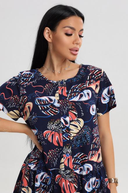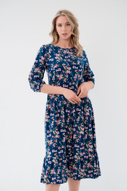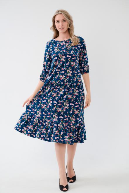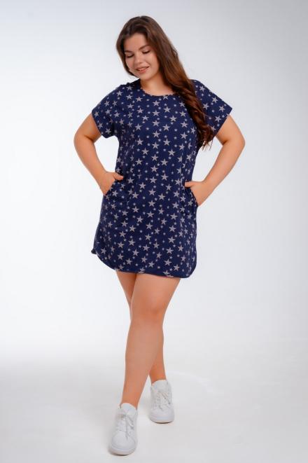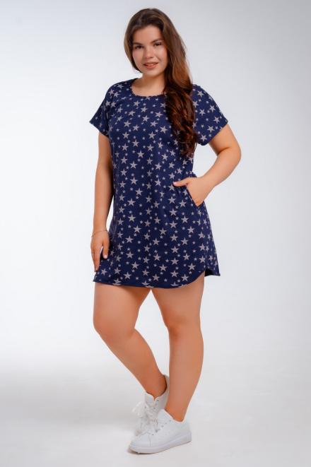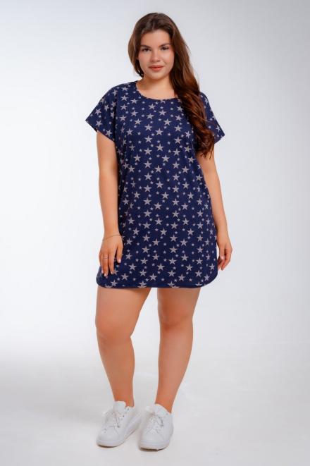 Блуза женская из кулирки Матильда горошек на тёмно-синем макси