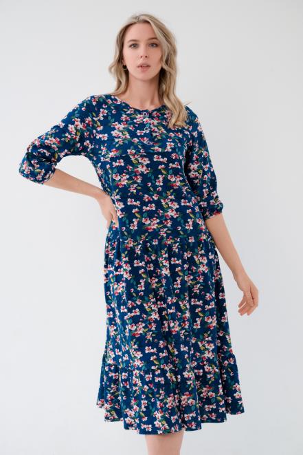 Ночная сорочка из вискозы с кружевом Селин темно-синий