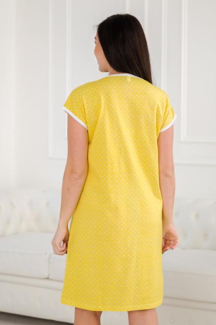 Ночная сорочка из кулирки Социал спущенное плечо горошек нежно-желтый