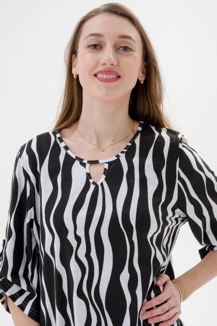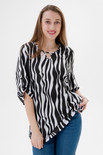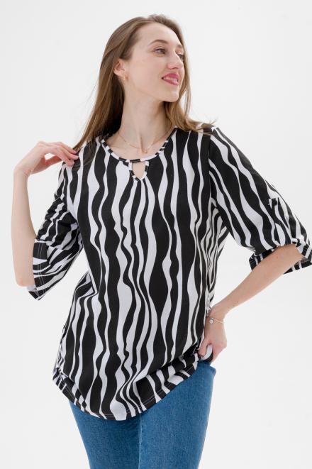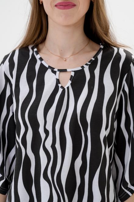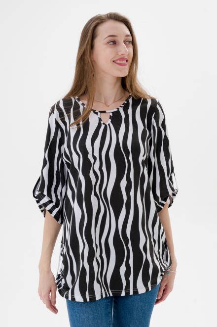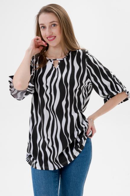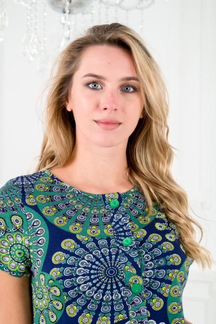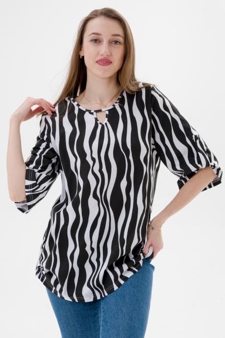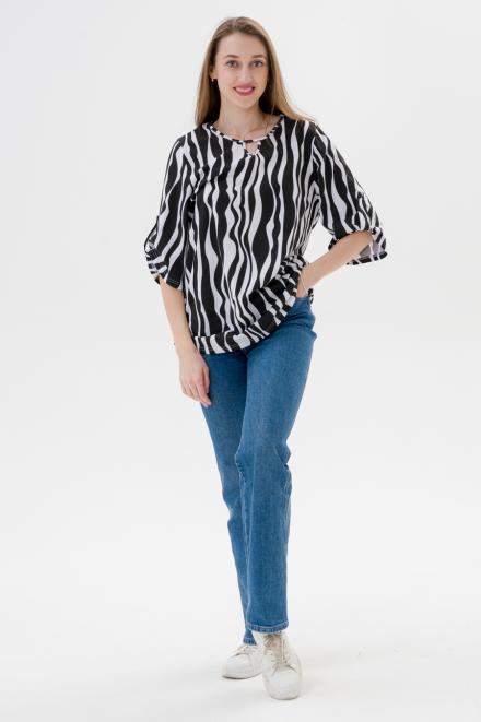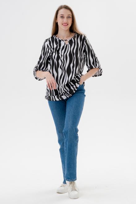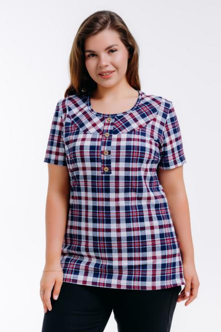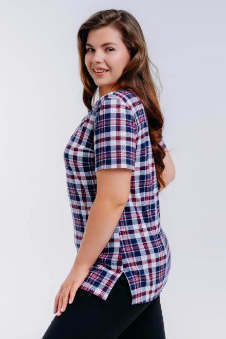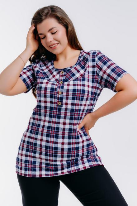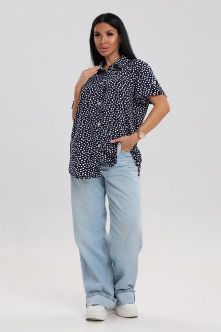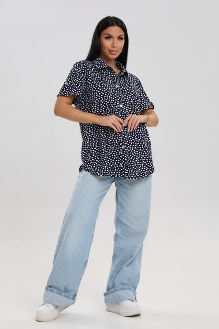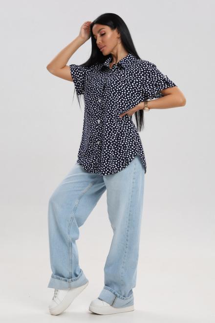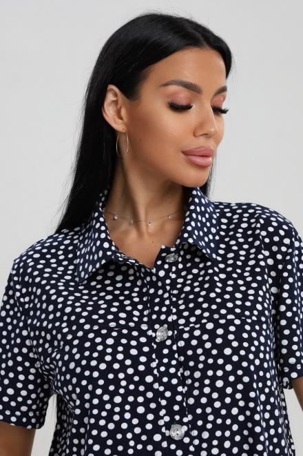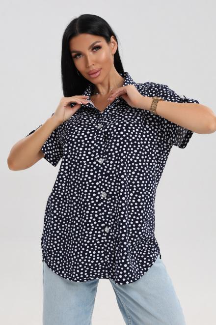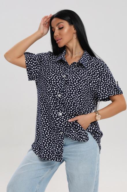 Блуза женская из кулирки Матильда горошек на тёмно-синем
