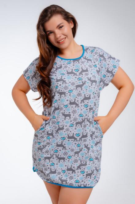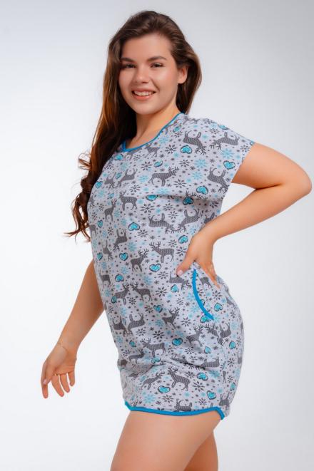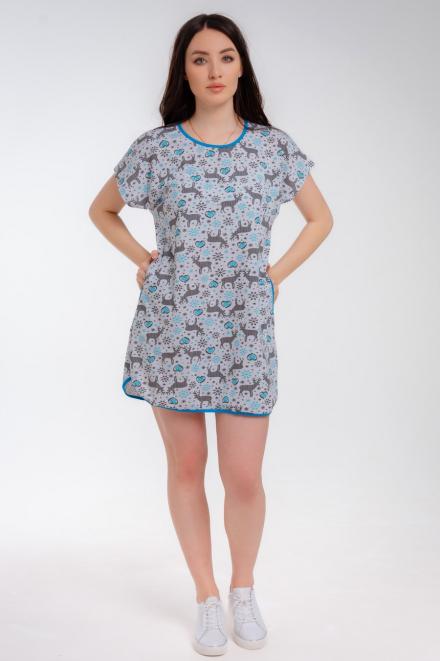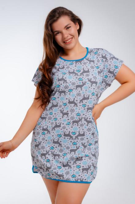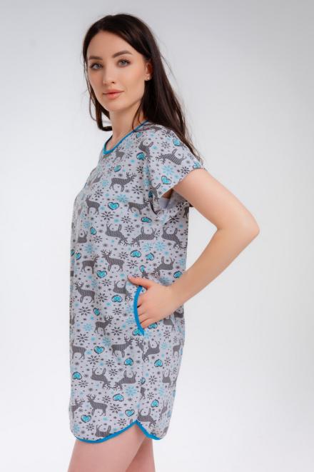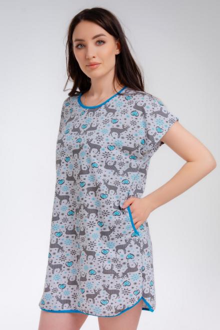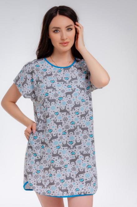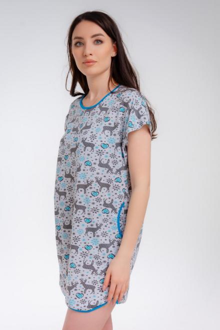 Ночная сорочка из интерлока длинный рукав Соня голубой
