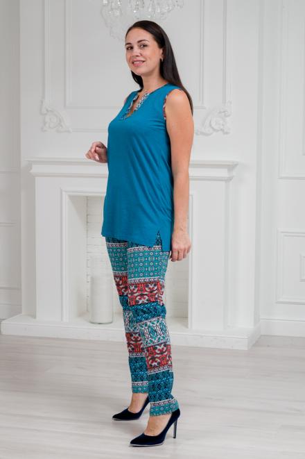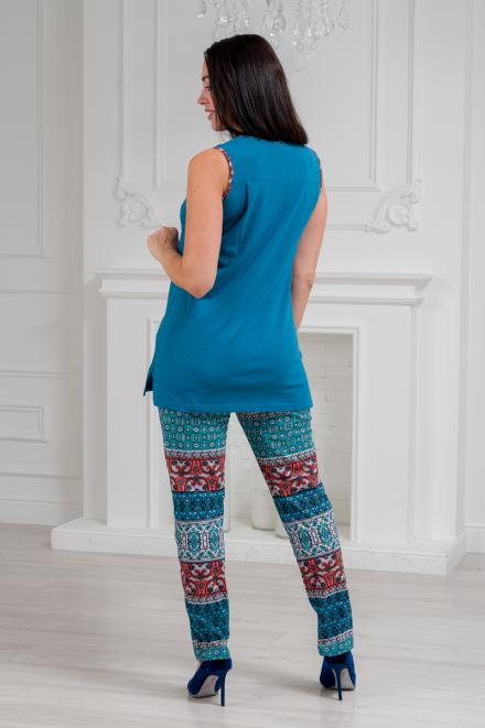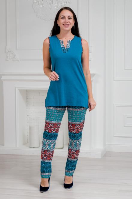 Пижама женская из майки и брюк из кулирки Лисандра бирюза