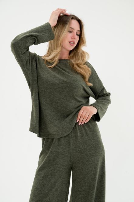 Костюм женский из джемпера и брюк из ангоры Византия темно-зеленый