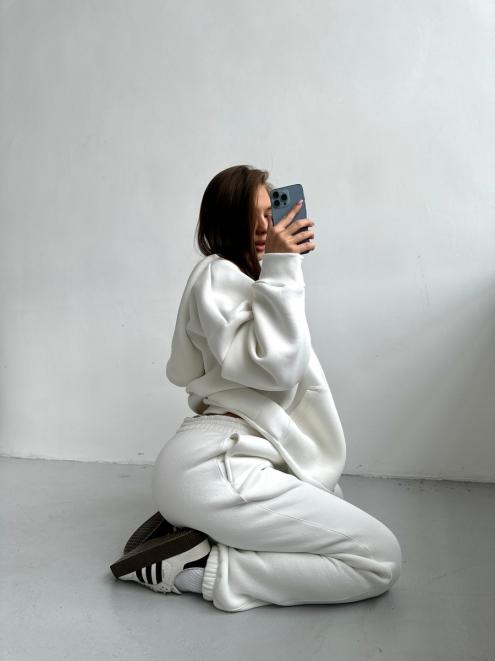 Брюки женские из футера трехнитка с начесом Сова экрю