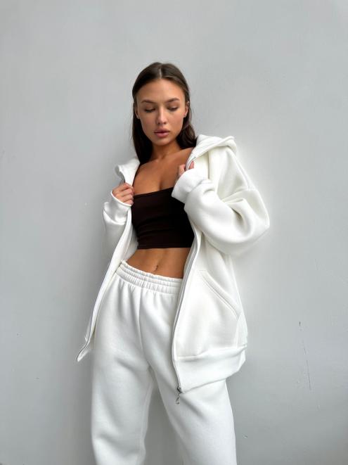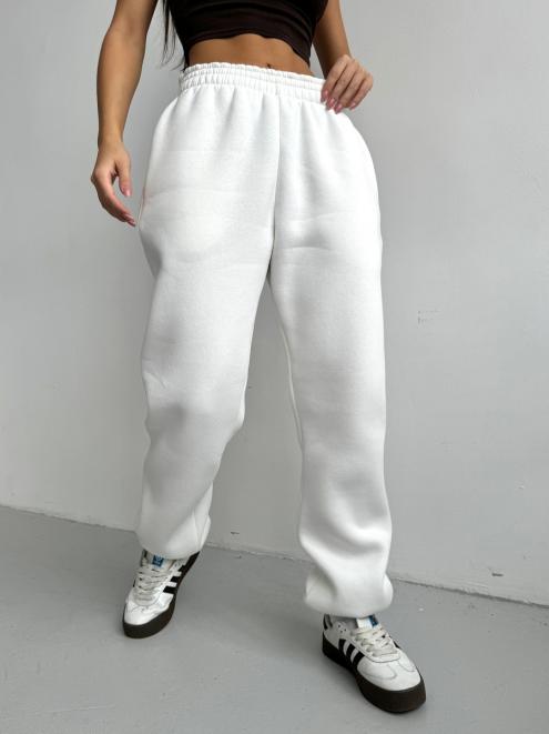 Брюки женские из футера трехнитка с начесом Сова экрю макси