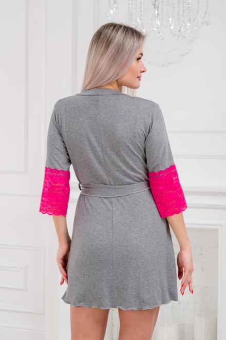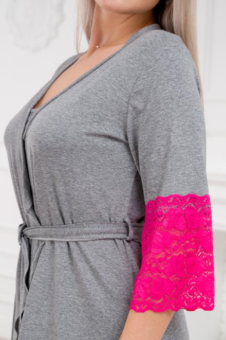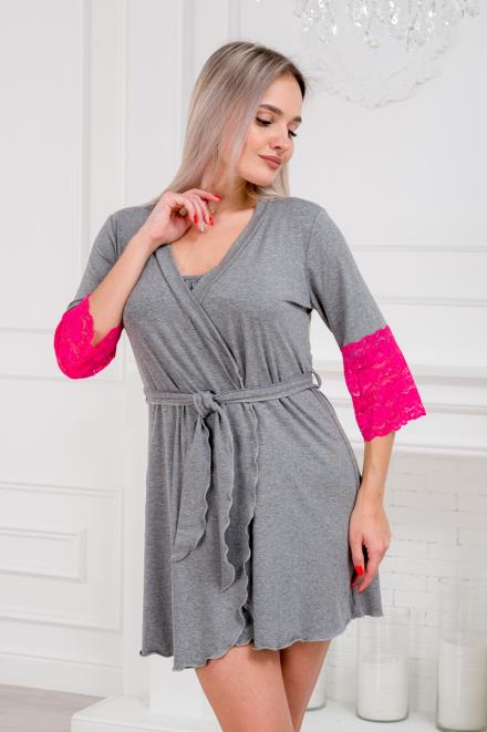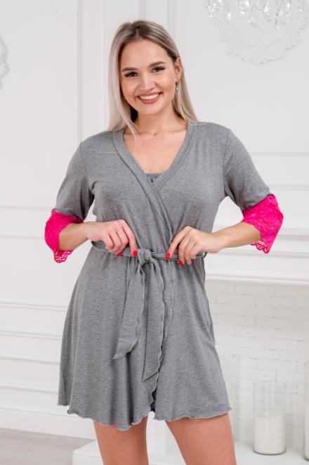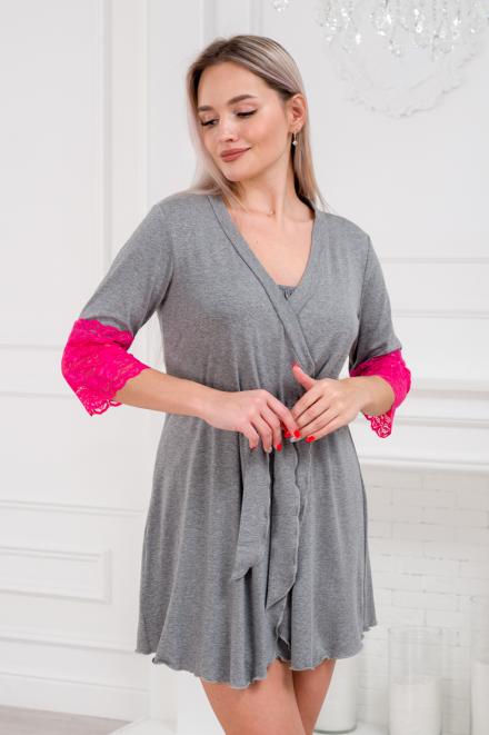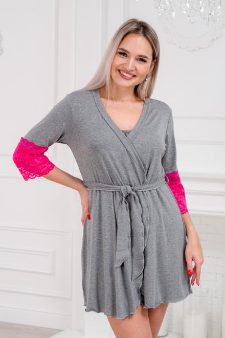 Халат женский из вискозы Адель Нуар серый меланж малиновый