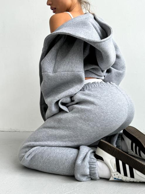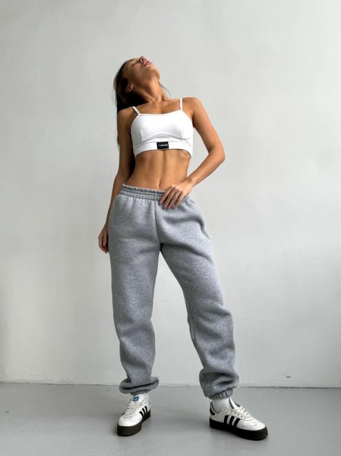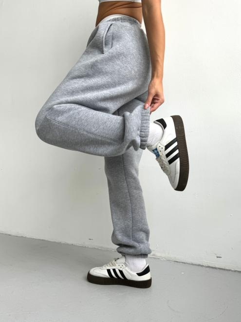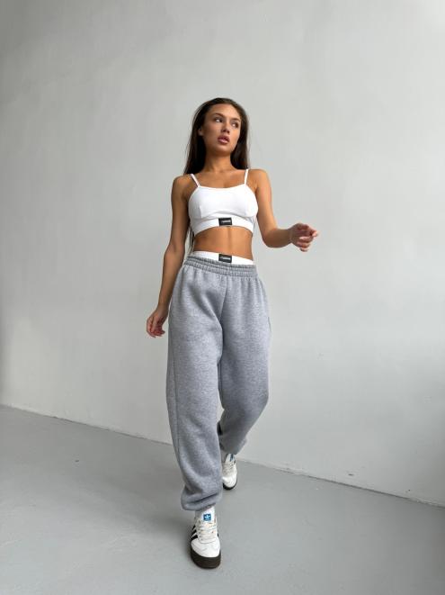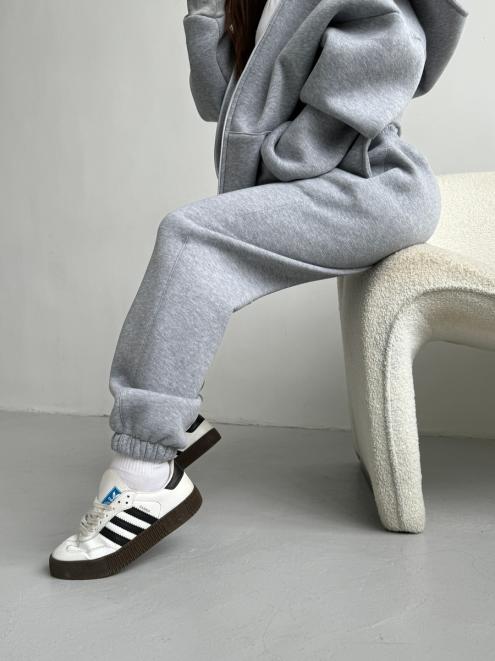 Брюки женские из футера трехнитка с начесом Сова серый меланж
