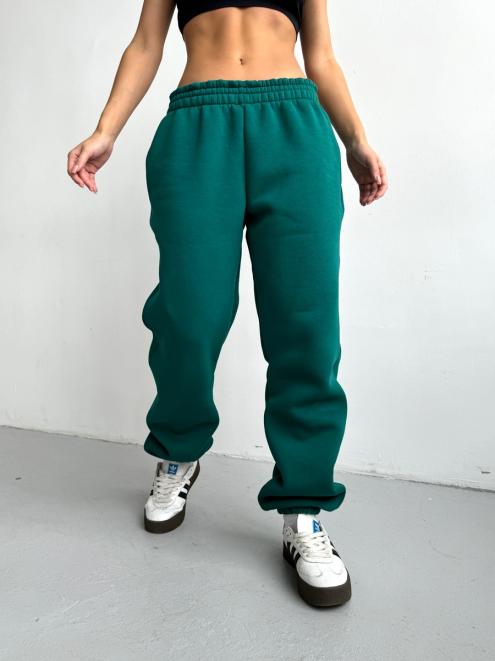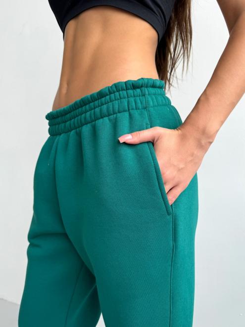 Брюки женские из футера трехнитка с начесом Сова изумруд