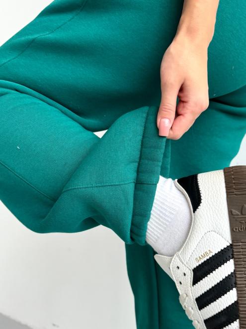Брюки женские из футера трехнитка с начесом Сова изумруд макси