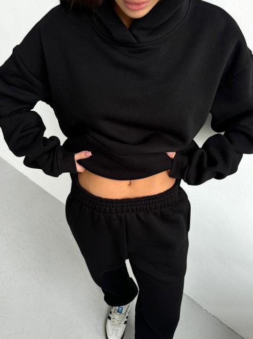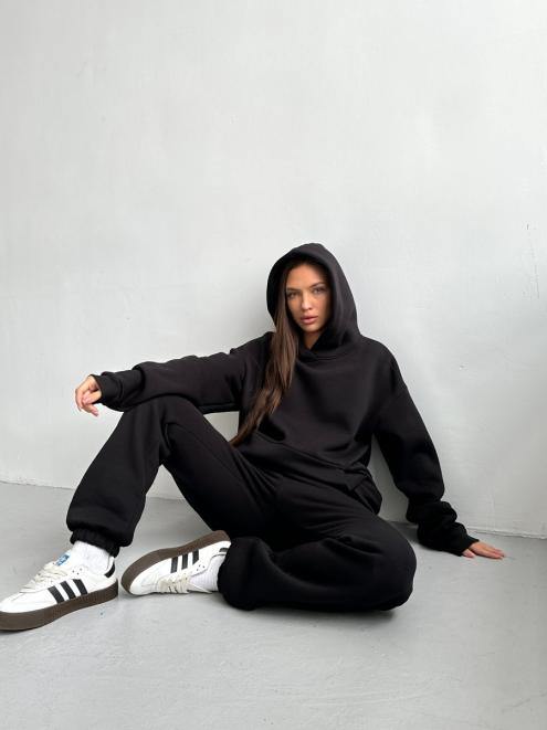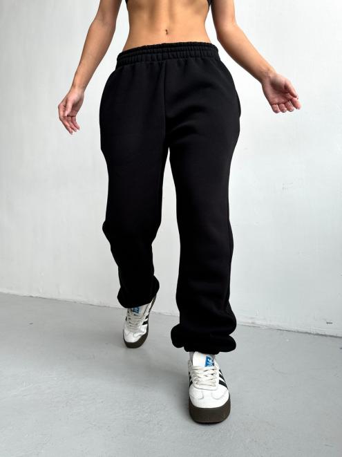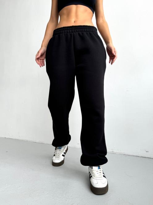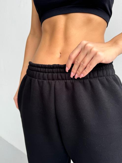 Брюки женские из футера трехнитка с начесом Сова черный макси