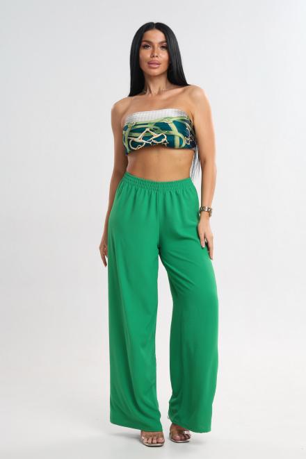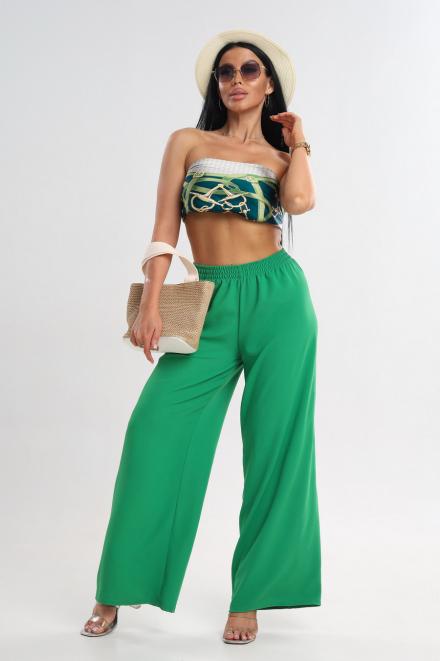 Брюки женские Палаццо из жатки изумрудно-зелёный