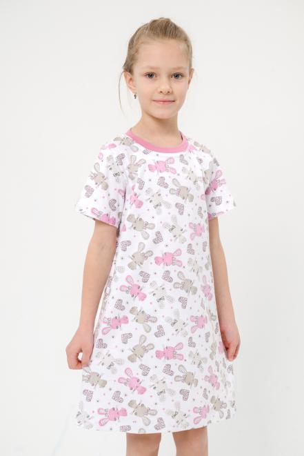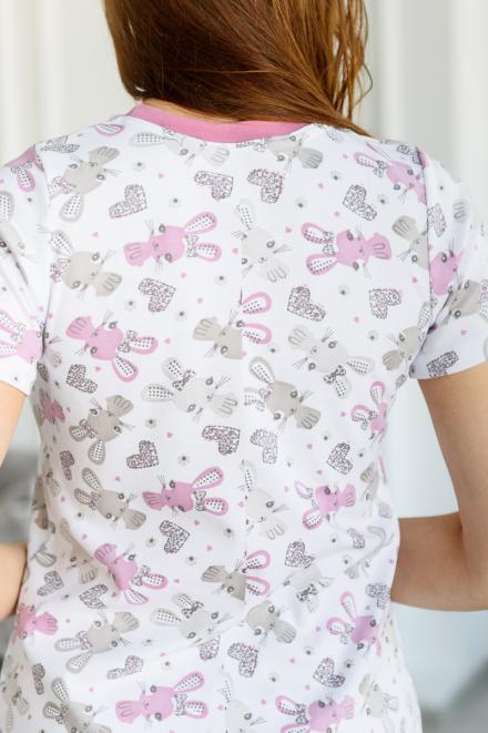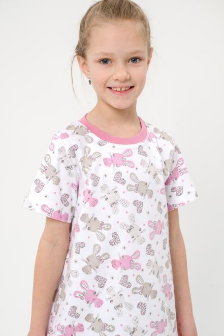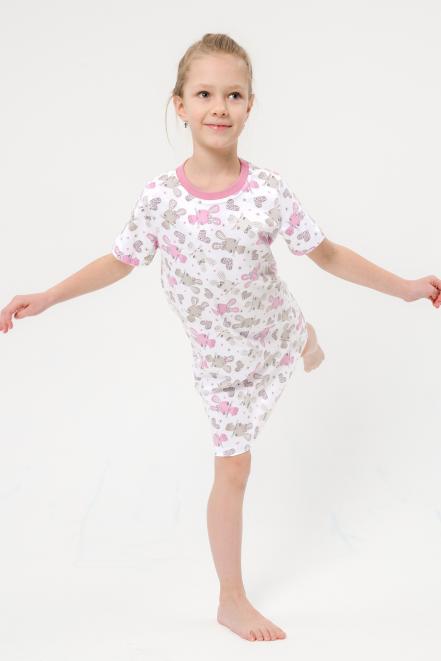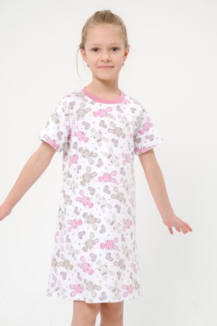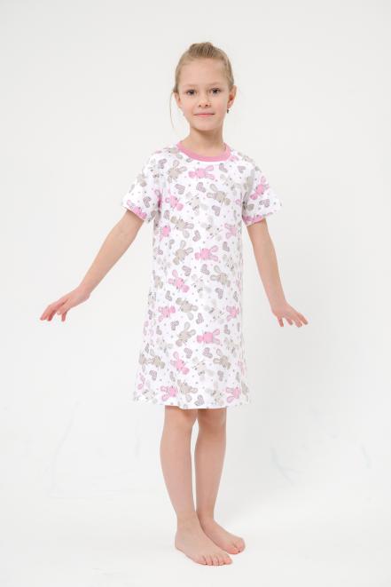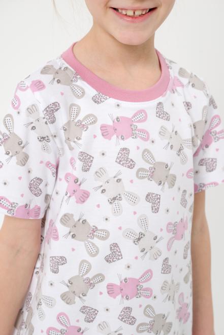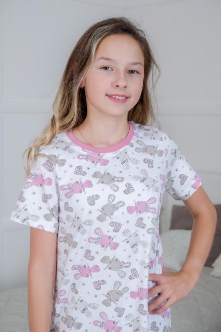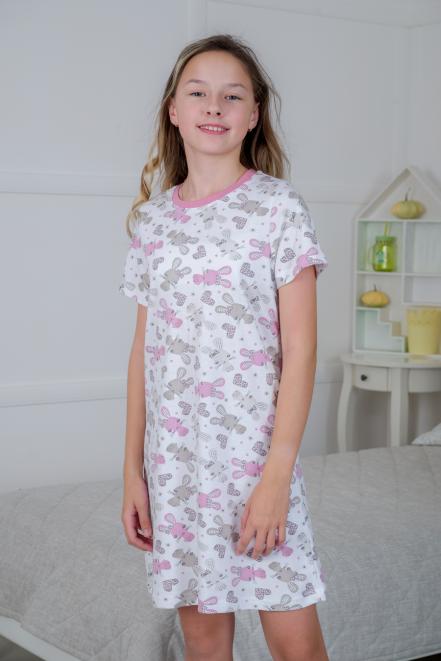 Ночная сорочка подростковая из интерлока Ласка зайчики розовый
