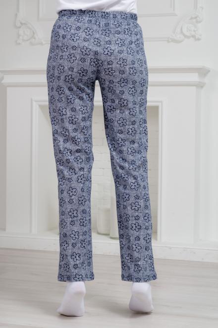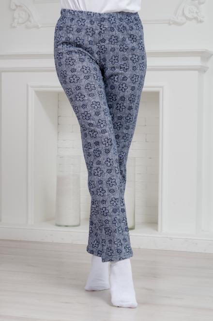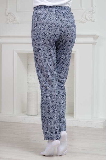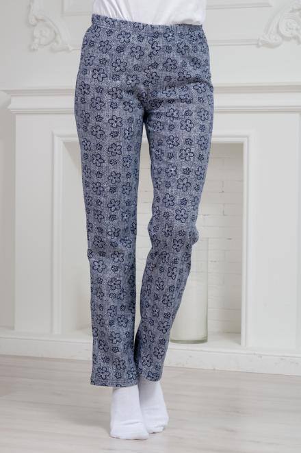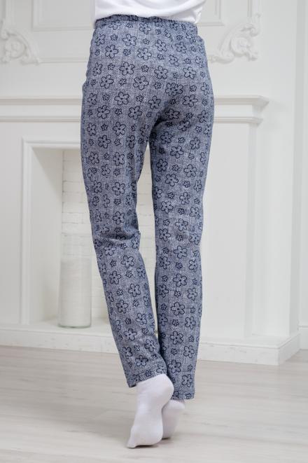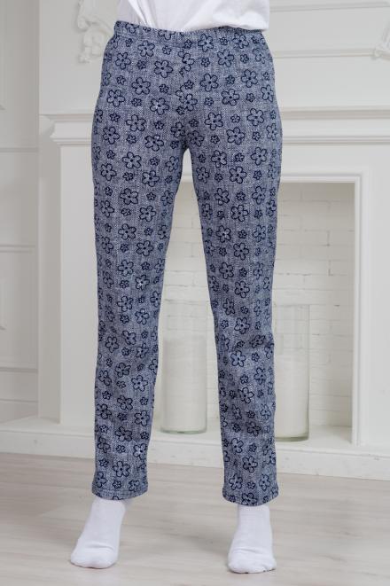 Брюки женские домашние из футера на манжете горох на синем