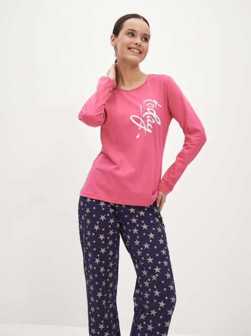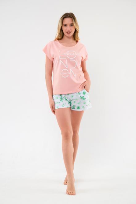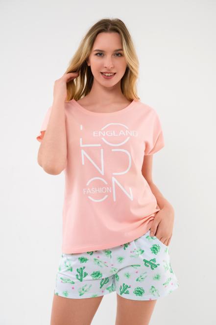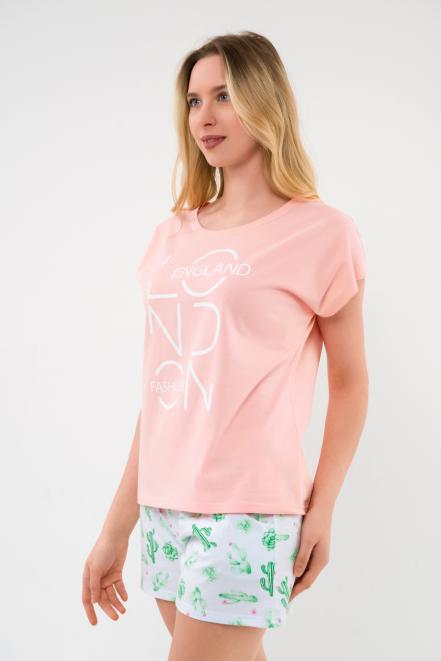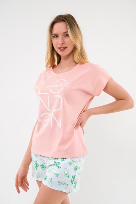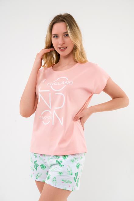 Пижама женская из футболки и шорт из кулирки Алиса розовый