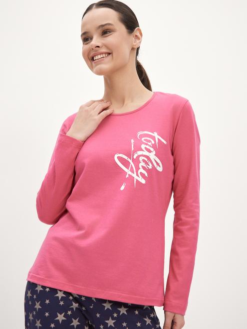 Ночная сорочка из интерлока длинный рукав Соня розовый